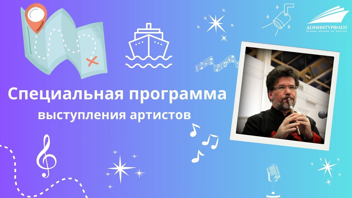 Приглашаем вас окунуться в мир волшебных звуков и незабываемых эмоций на борту теплохода «Антон Чехов». Павел Шмырёв — уникальный музыкант, мультиинструменталист, лауреат международных конкурсов и мастер своего дела. Все выступления — это гармония мелодии, души и искусства, которые оставят яркий след в вашем сердце. Вас ждет огромный репертуар: от народных мелодий до мировых шедевров. Мастер-класс «Флейты мира» - это необычное мероприятие, где вы: ▫️Познакомитесь с редкими духовыми инструментами со всего мира, среди них: флейта Пана, свирель, окарина, кена, дудук и другие. ▫️Услышите уникальное звучание флейты любви и флейты печали, узнаете их истории. ▫️Погрузитесь в атмосферу тепла и искренности, которую дарят только аутентичные инструменты. ℹ️Павел Шмырёв — музыкант, композитор, поэт и педагог. Он - лауреат Международного конкурса исполнителей на панфлейте в Польше, участник престижного фестиваля Eurochestries во Франции, лауреат 1-ой степени на Фестивале народов России, обладатель