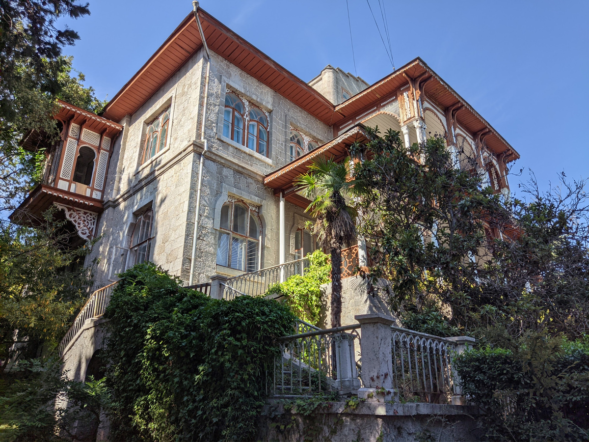 🏰 Карасан — дворцово-парковый комплекс, созданный в начале XX века по заказу крымского магната Михаила Карасана. Расположен он между Партенитом и Утесом. 🏠 Фасады сооружения выдержаны в стиле модерн, с характерными для этого направления изогнутыми линиями, оригинальной резьбой и геометрическими узорами. Они украшены статуями, карнизами и фронтонами, придающими зданию благородство и величие. 🗿 Вокруг здания можно увидеть элегантные колонны, украшенные резьбой и орнаментом. Балюстрады из камня или мрамора создают впечатление изысканности и утончённости. 👑 Крыши дворца часто увенчаны куполами или башнями, создают аристократический облик. Арки, как внешние, так и внутренние, играют важную роль в архитектуре замка. 🪟 Витражи и стеклянные панели, часто используемые в арочных окнах и дверях, придают зданию особую изящность и красоту, делая его одним из красивейших дворцов Крыма. ↗️ Внутри находятся величественные залы и помещения, насыщенные роскошью и изысканностью. Например, мраморная
