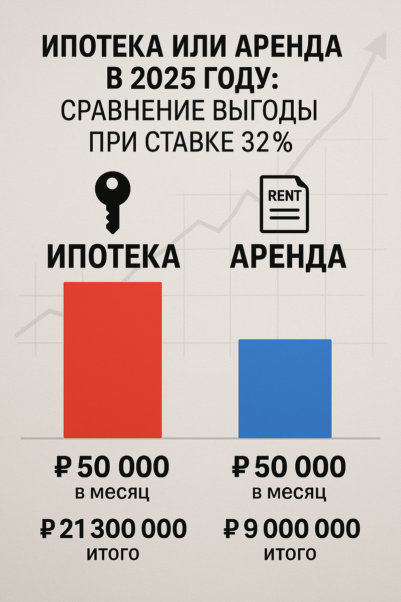 💡 Вывод: Аренда кажется выгоднее ипотеки под 32%, но в долгосрочной перспективе вы не накапливаете актив.
