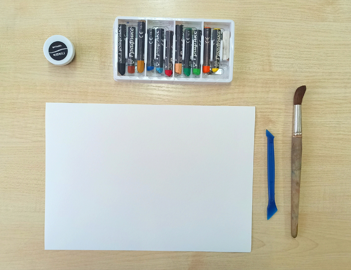 Ещё одна из необычных техник рисования в детском саду - гравюра. Создание гравюры — это творческий процесс, в ходе которого ребёнок создаёт картинку, процарапывая рисунок на поверхности, покрытой краской. 1. Белый картон (не глянцевый) или плотная бумага для акварели 2. Восковые карандаши разных цветов (можно использовать масляную пастель); 3. Гуашь чёрного цвета (или другого тёмного); 4. Мягкая кисть большого размера 5. Тонкая палочка (например, стека, шпажка). 1. Создаем цветную основу-фон. Для этого необходимо разрисовать одну сторону бумаги (картона) в произвольном порядке разноцветными восковыми мелками. Чем насыщеннее и контрастнее цвета, тем эффектней они будут выглядеть при гравировке. 2. Плотно закрашиваем фон чёрной густой гуашью (воду не использовать!). Даже если в некоторых местах краска будет расходиться от воска, необходимо повторять закрашивание, пока фон не перестанет проступать. 3. Дожидаемся высыхания краски. 4. Когда гуашь подсохнет, можно использовать то
