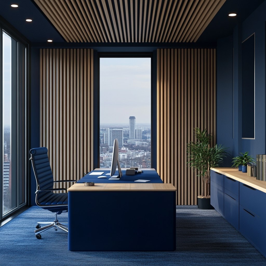 Создано на основе запроса: in office facing the window on the back wall with the desk sideways in all blue and around the tall window is acoustic slat wood, modern, vray quality --- Автоперевод: В офисе, обращенном к окну на задней стенке с стол сбоку во всем синем, а вокруг высокого окна - акустическое дерево плащника, современное качество Vray Круто получилось? 🤔 https://dzen.ru/id/65c0c65c86e4f837c27b24d7 #ИИ #AI #нейросеть #midjourney #art