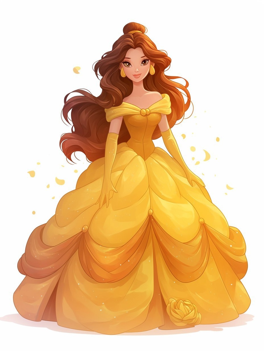 Создано на основе запроса: Draw a Belle Princess, front, large skirt, colorful skirt, white background, strong texture, cartoon, hand-drawn