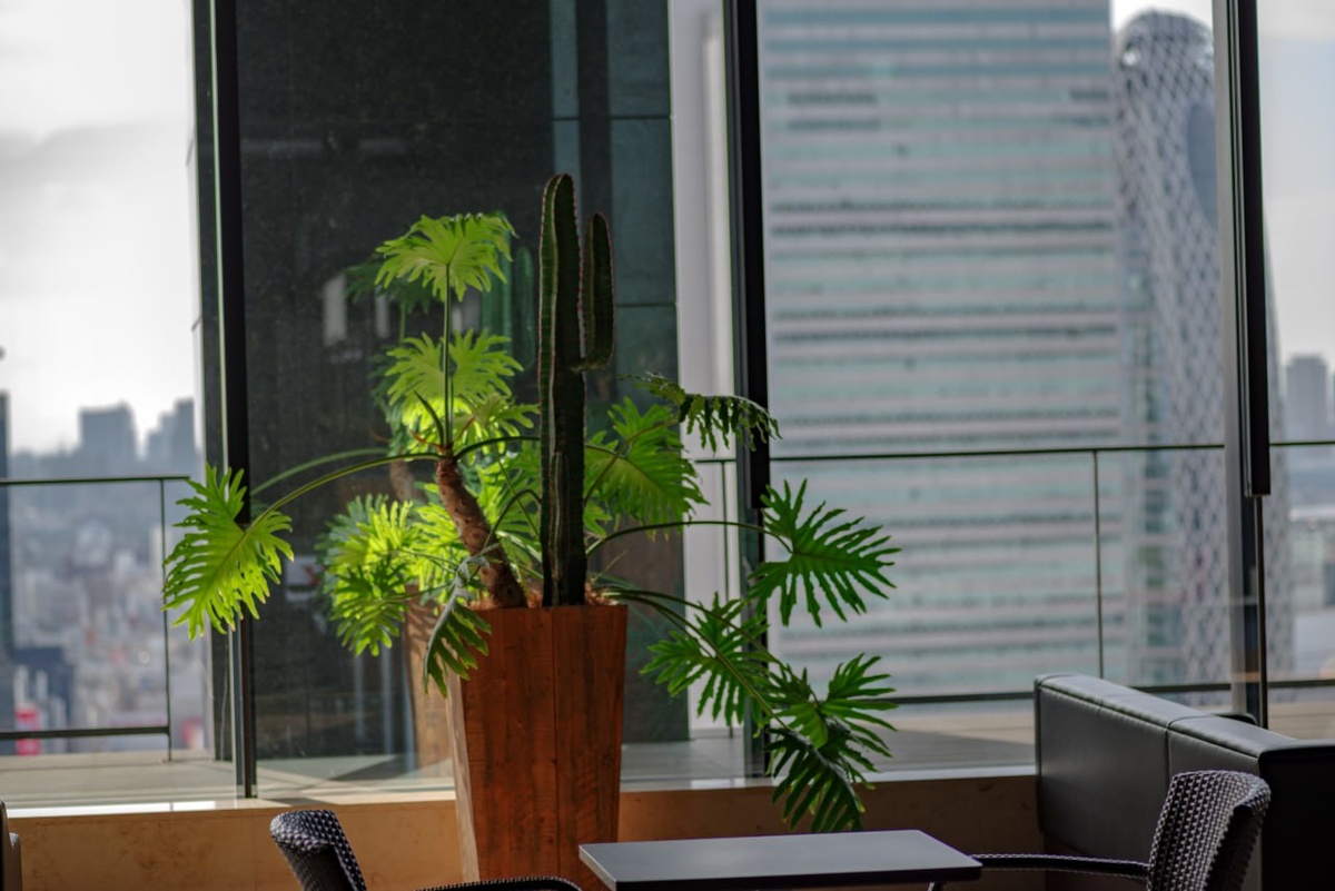 ✅ Крупные напольные растения – пальмы, монстеры, фикусы, которые становятся стильными акцентами в переговорных и холлах.