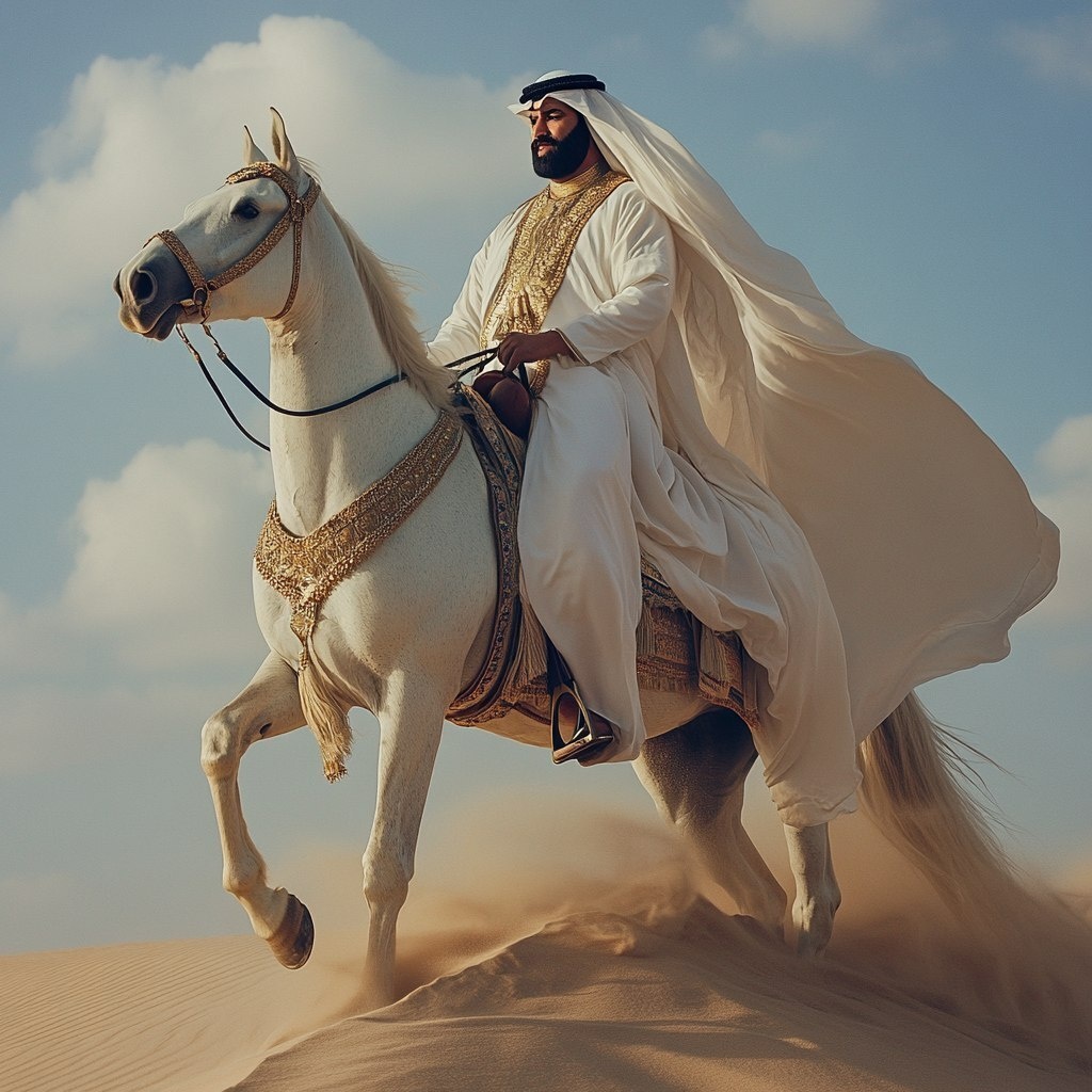 Создано на основе запроса: a jolly big arabic man in cerimonial dress, riding a horse down a sand dune --- Автоперевод: Веселая большая арабская женщина в церемониальном платье, катаясь на лошади по песчаной дюне Необычно выглядит? 🤔 https://dzen.ru/id/65c0c65c86e4f837c27b24d7 #ИИ #AI #нейросеть #midjourney #art