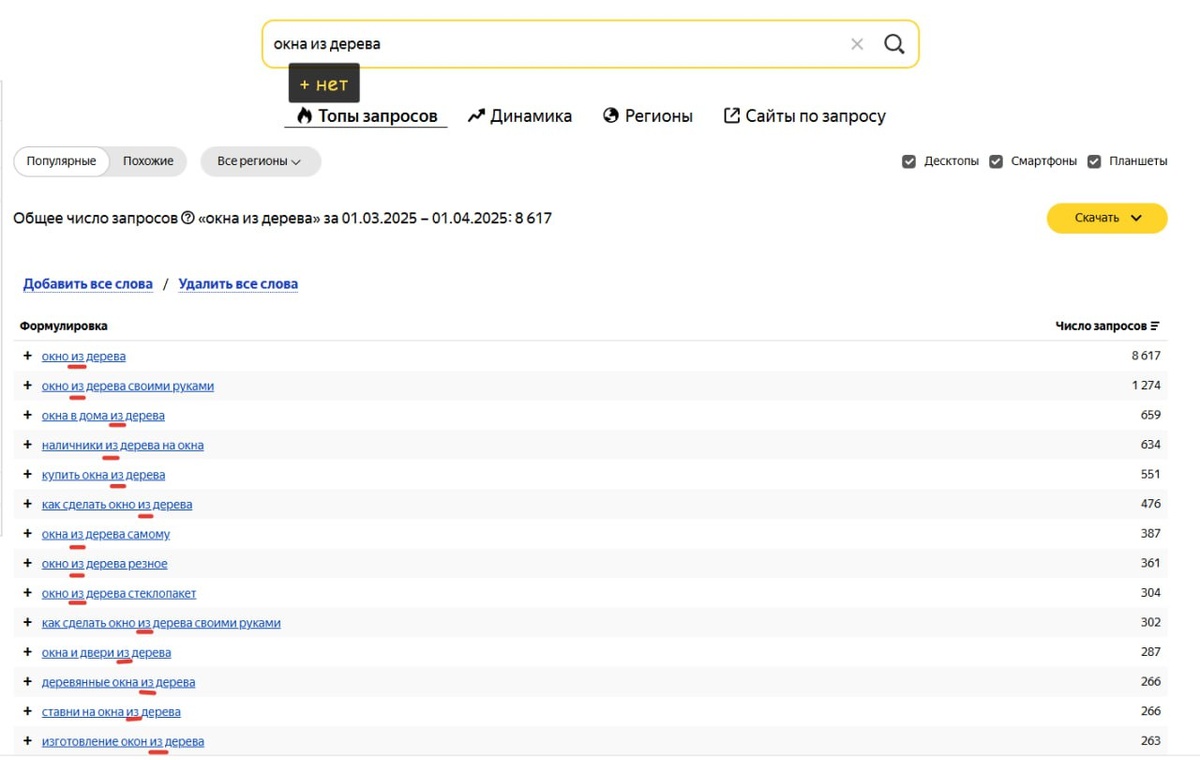 Кто знаком с Яндекс Директом, знает что при сборе ключевых слов, а именно формирование матрицы запросов для парсинга, необходимо было перед союзами и предлогами ставить знак +