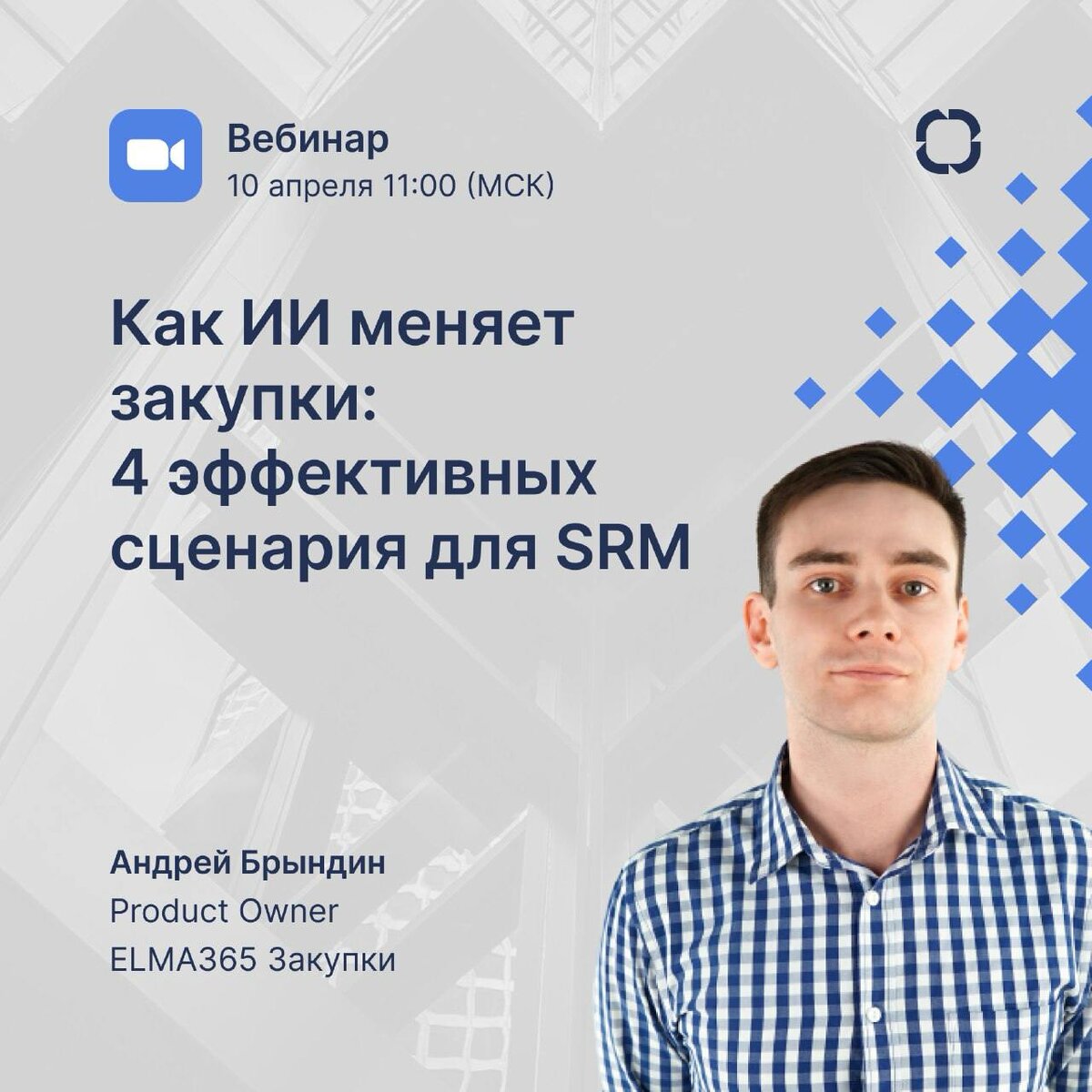 На вебинаре Андрей Брындин, Product Owner ELMA365 Закупки, покажет четыре сценария, как применить ИИ-инструменты в SRM.