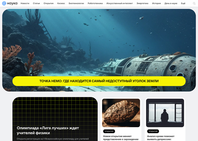 VK представила медиапроект «Наука Mail» — он направлен на популяризацию науки. Читатели смогут узнавать о передовых разработках и открытиях через новостные материалы, экспертные колонки и спецпроекты. Основные темы: космос, искусственный интеллект, энергетика и биотехнологии. Кроме того, пользователи первыми получат доступ к информации о научной деятельности ведущих российских вузов.