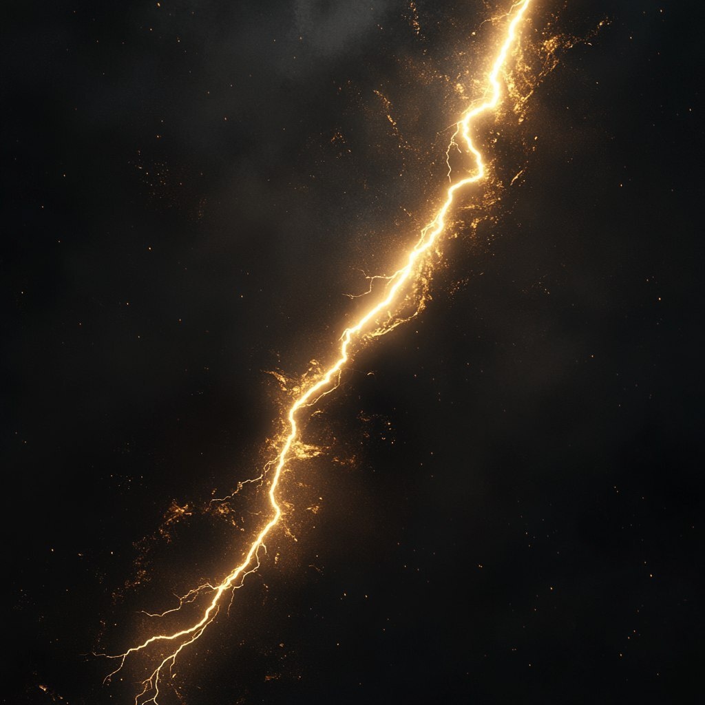 Создано на основе запроса: A hyper-realistic digital image of a single thin and elegant golden lightning bolt, stretching diagonally from
