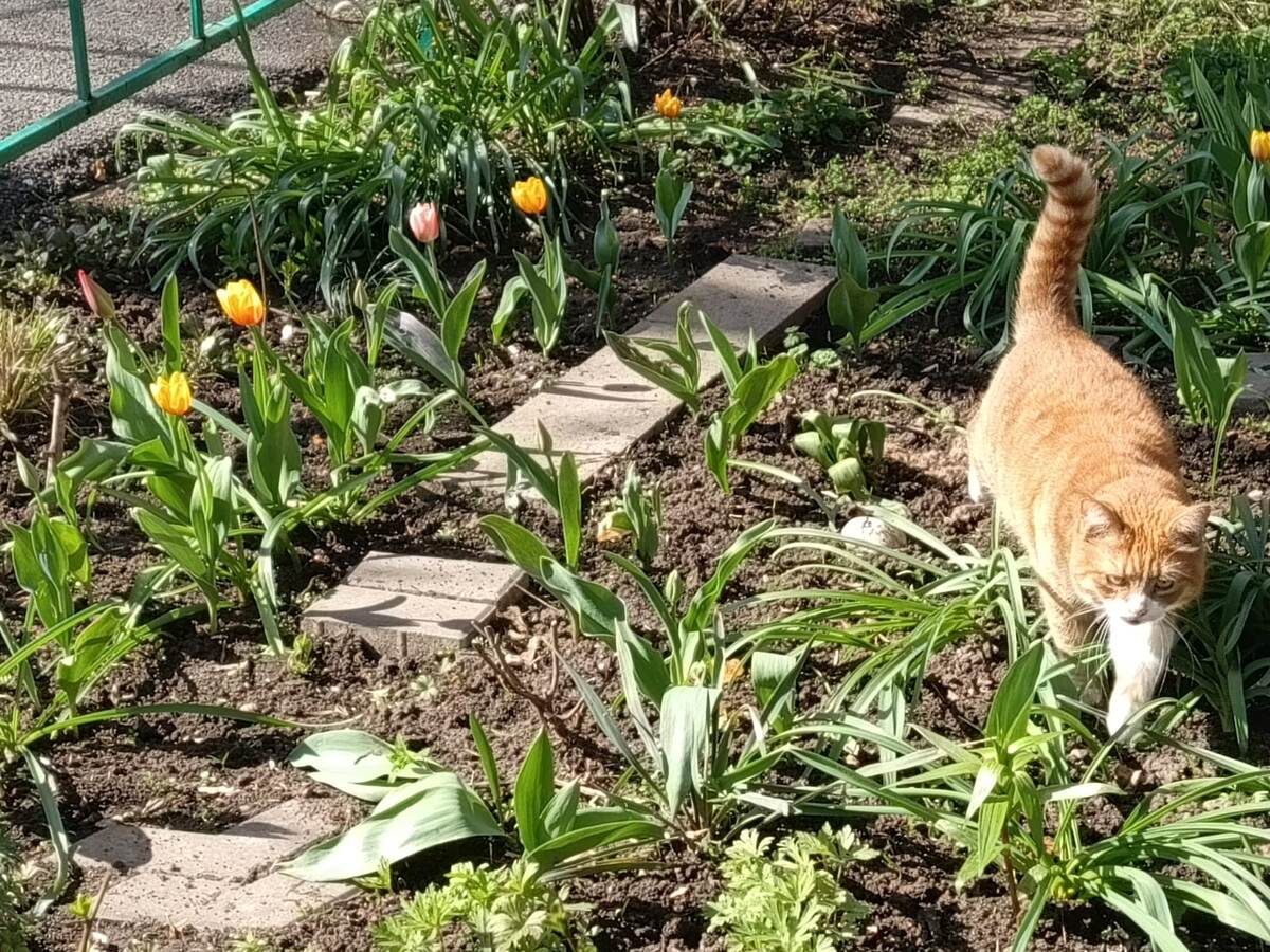 Коты и зайцы - это самые мартовские животные. Зайцев у нас в городе встретить не просто, а котов много всяких. И вот в последний день первого весеннего месяца мне повстречался такой кот. День выдался солнечным, распустились тюльпаны. И хотя это явление было закономерным, поскольку накануне расцвели нарциссы, а на диких берегах Дона и Донца неделю назад уже были замечены раскрывающиеся бутоны тюльпанов Биберштейна, все-равно, кажется, что рано. Кот тоже был рыжим, как и тюльпаны в палисаднике, возле которых он прохаживался. А чуть позже я увидел этого же кота на крыше заброшенного УАЗика- "буханки". Возможно, кот живет в ней и это - "буханка" кота. А вчера в первый день апреля был не только день смеха, но и международный день птиц. Видимо по такому случаю во двор прилетела птица - красавец-фазан. Четкий снимок не получился, но фазан виден. Походил, поискал что-то и улетел. Так что весна такая ранняя. И город уже бел, но не от снега, а от цвета жерделовых (абрикосовых деревьев). А весн
