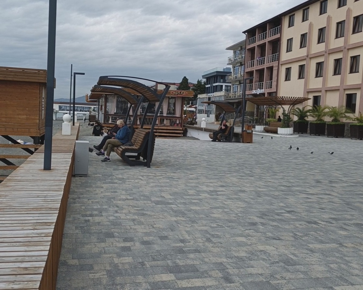 В основном, пляж галечный, но есть и песок, и мелкая галька, и крупная галька.