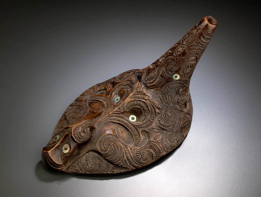 Голос маорийского резчика гулко отдается под сводами мастерской. Древесина каури поддается, слой за слоем, открывая плавные узоры — витки папоротника, завитки манаиа, потоки времени, запечатленные в форме. Он не просто делает предмет, он выводит песню, которую услышат потомки. В его руках — корэре, ритуальная воронка, через которую кормили тех, чьи лица были покрыты свежими прорезями та моко. Маорийский воин, прошедший сквозь ритуал нанесения та моко, переживал не только боль, но и вынужденную изоляцию. Губы распухали, рот невозможно было открыть, каждая попытка жевать приносила мучение. Но тело требовало пищи. Здесь на помощь приходила корэре — тонко украшенная воронка, через которую воина кормили жидкими блюдами. Это был не просто удобный инструмент. Коснуться головы человека, наделенного мана (священной силой), мог только тот, кто знал правила взаимодействия с тапу. Нарушение каралось не только гневом богов, но и изгнанием из общины. Корэре позволяла сохранить баланс между духовным