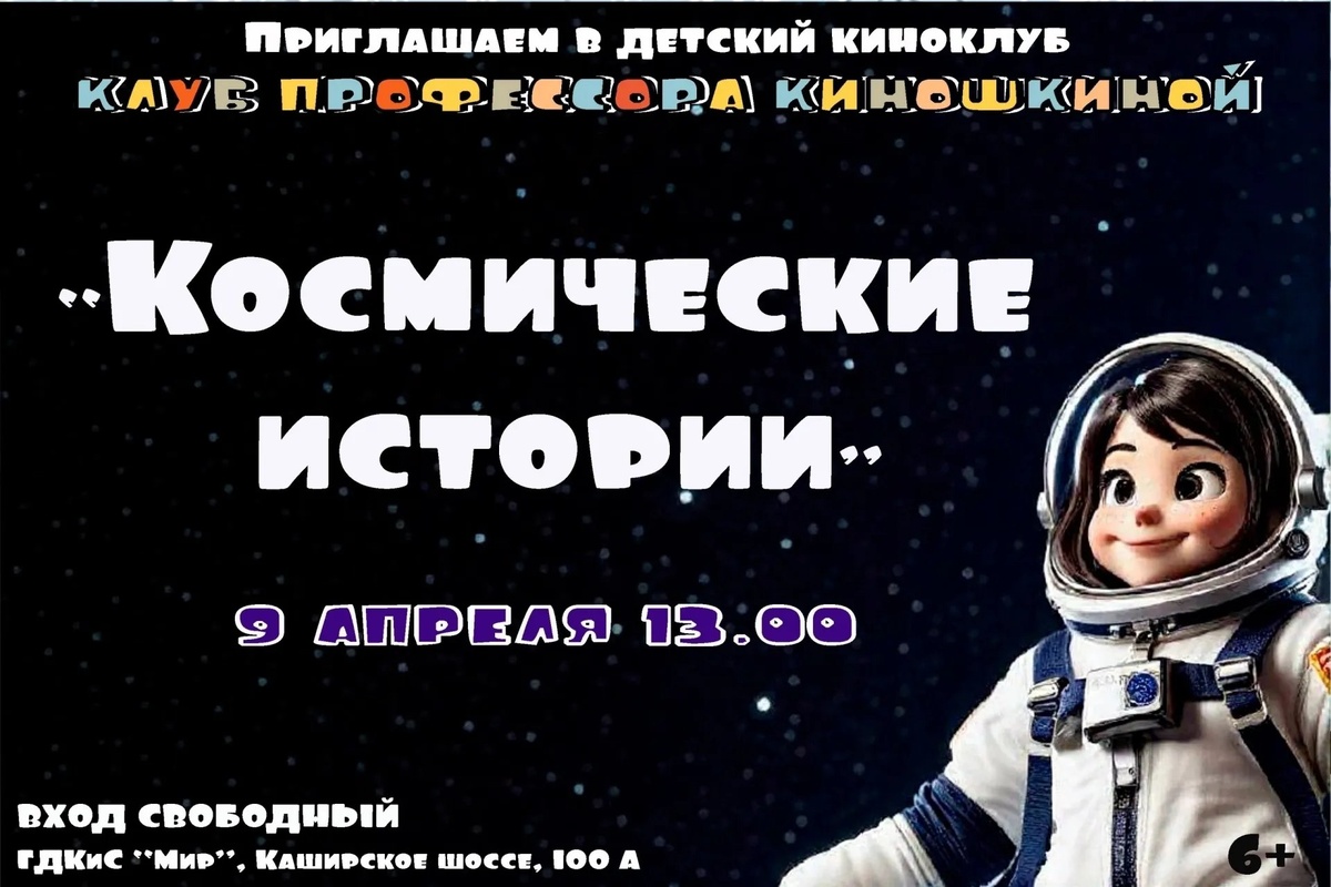 ✨ 🌟 Приглашаем на встречу в клуб профессора Киношкиной! 🌟 Дорогие друзья! Мы рады сообщить, что 9 апреля в 13:00 состоится встреча, посвящённая полёту Юрия Алексеевича Гагарина в космос и важным точкам нашей космической истории. Это будет интереснейшая встреча, где ребята смогут почувствовать себя настоящими космонавтами! 📡🚀 а также посмотреть важный для каждого подрастающего гражданина нашего страны фильма о подвиге Юрия Алексеевича Гагарина 🎬 Не пропустите! Приходите за новыми знаниями и впечатлениями! 👨🚀✨ Ждём всех желающих! 🌌 📆 09.04.2025🕒13:00 🏢 Дворец культуры и спорта «Мир» 📍 г. Домодедово, Каширское шоссе, д.100А 💰 Вход свободный❗️ ✅ Мероприятия Домодедово https://dzen.ru/id/66f10385cc4c5a16f7b5fb02 http://vk.com/domodedovo_events http://dzen.ru/domodedovo_events