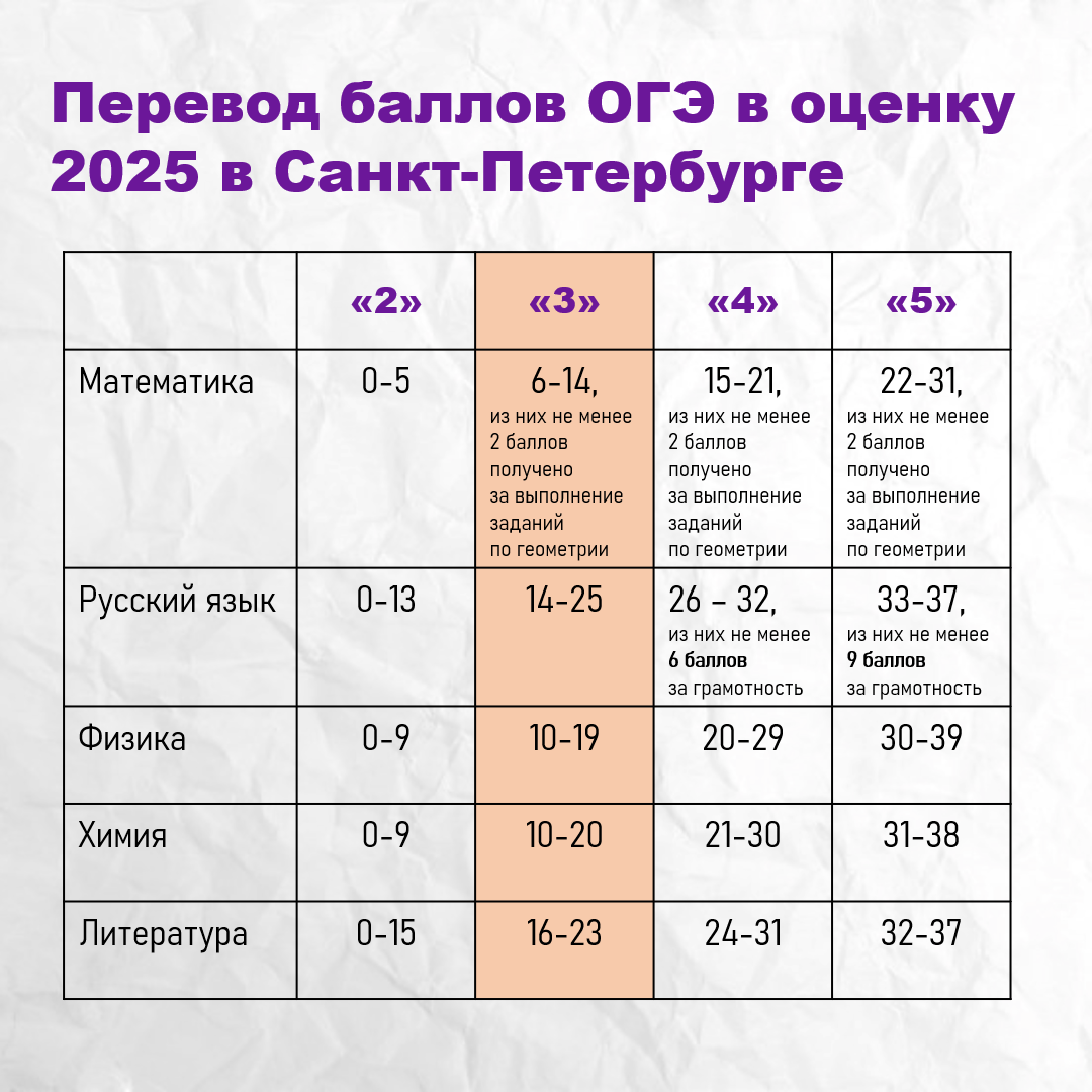 Власти Санкт-Петербурга опубликовали проект шкалы перевода первичных баллов ОГЭ в пятибалльную шкалу и минимальные баллы для тройки. Обращаем внимание, что в разных регионах данная шкала может немного отличаться. Иногда власти меняют ее уже постфактум, если слишком большое количество выпускников завалило тот или иной предмет. В этом году власти решили понизить порог по математике сразу на 2 первичных балла с 8 до 6. Требование про 2 балла за задания по геометрии при этом сохранились. Чтобы получить "3" в этом году достаточно верно решить менее 20% от работы. По русскому языку так же снижение порога, но на 1 первичный балл. Зато общее количество баллов за работу вырос с 33 до 37. То есть раньше оценка "3" начиналась с 45% верных ответов, теперь с 37%. Напоминаем, что в этом году для получения аттестата за 9 классов в Санкт-Петербурге будет достаточно сдать русский язык и математику. Очевидно, в этом году получить аттестат будет проще простого. Порог для предметов по выбору практ