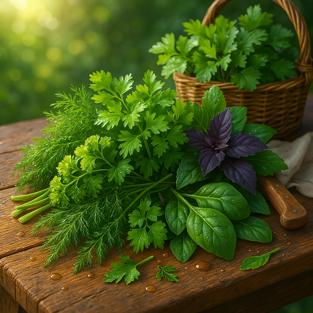 Настоящий чемпион. Богата витамином C (в 2 раза больше, чем в лимоне!), железом, фолиевой кислотой и антиоксидантами. Улучшает кровообращение, поддерживает печень и женскую гормональную систему. 🌿 Кинза (кориандр)