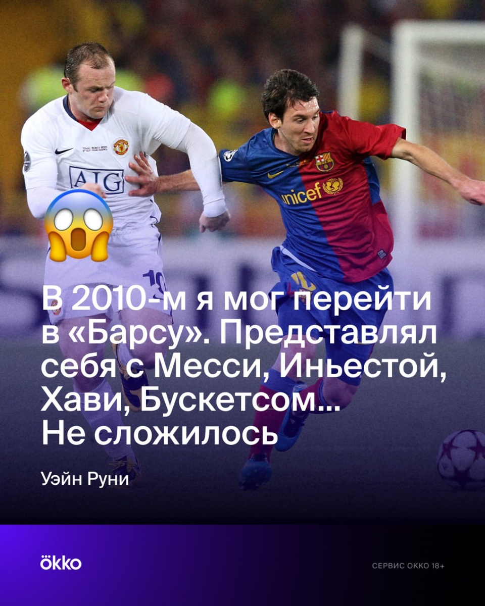 🫢 Руни мог оказаться в «Барсе». Уэйн поделился олдскульной историей. Я просил «МЮ» выставить меня на трансфер в 2010-м. Интерес проявляли «Реал», «Челси» и «Барса». С каталонцами я общался больше всех. Я уже представлял себя с Месси, Иньестой, Хави, Бускетсом... Но в итоге никуда не ушел. Вписался бы форвард в испанскую команду?