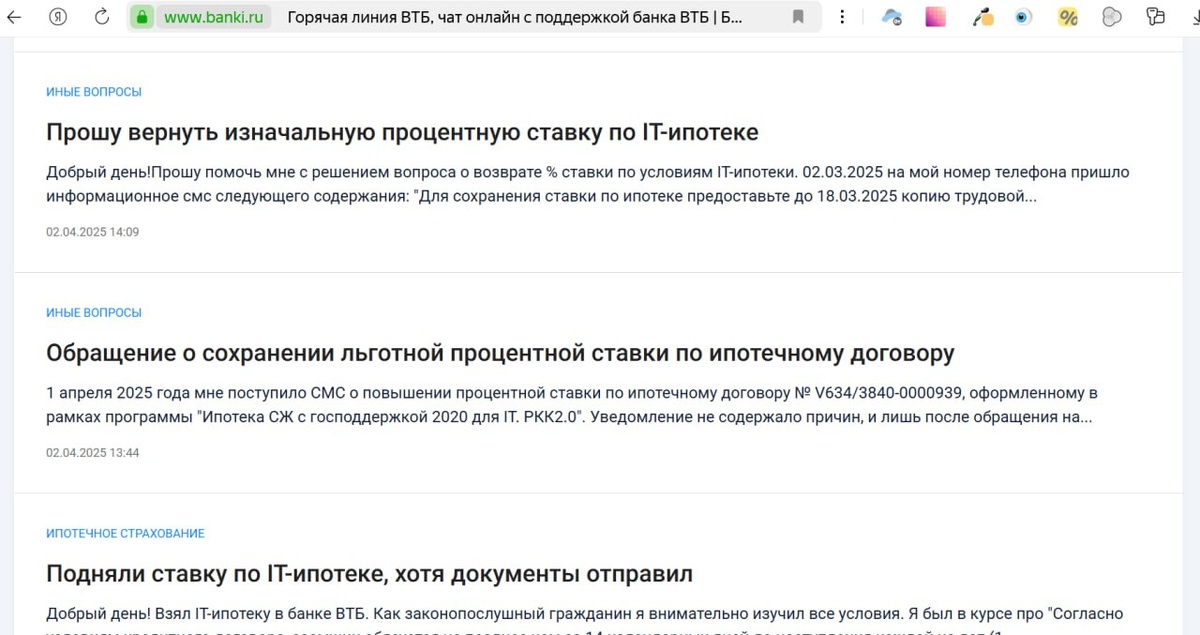 ВТБ пересмотрел действующие условия ИТ-ипотеки Что случилось Вчера письма счастья с сообщением о повышении ставки по ИТ-ипотеке с 6 до 14% от банка получили те айтишники, которые в нарушение условий кредитного договора не подтвердили, что всё еще работают в ИТ-компании. Сегодня пресс-служба ВТБ сообщила, что при получении от нарушителей документов льготные условия им вернут. Почему столько шума Пострадавшие утверждают, что банк их не уведомил, что надо предоставить документы. Часть ИТ-сообщества негодует, колл-центры ВТБ разрываются. Но❗️ Договор есть договор. По условиям ВТБ заемщики должны в течение 5 лет с даты заключения кредитного договора дважды в год — 1 апреля и 1 октября — подтверждать свое право на льготу. При нарушении — банк может повысить ставку. Подписание документа с такими условиями накладывает на заемщика обязанность и ответственность за нарушение. Нельзя сказать: «я не знал», «я забыл» или «а почему вы не напомнили». Хотя, видимо, сейчас в век соцсетей и зумеров