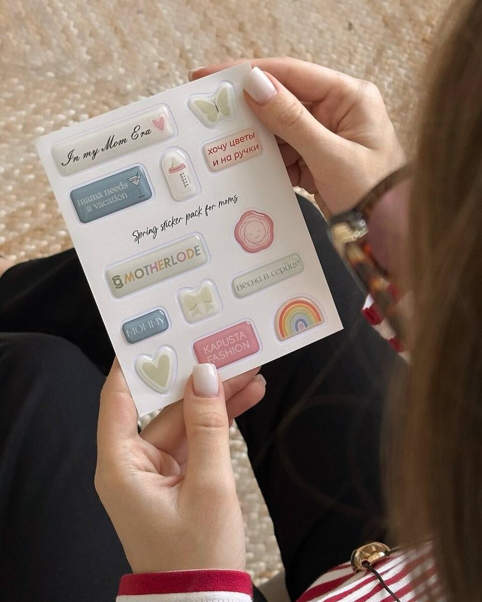В апреле бренд KAPUSTA Fashion отмечает свой день рождения - 12 лет! 🥳 Мы подготовили для вас много сюрпризов и будем делиться ими в наших социальных сетях. Первая новость - фирменные стикеры для мам, которые наш дизайнер разработал специально к празднику! Стикеры поднимают настроение, настраивают на весеннюю волну и делают материнство еще чуточку ярче! Добавьте немного веселья в свой день — украсьте гаджеты, дневник или детские вещи нашими милыми стикерами 💕 Дарим их при оплаченном заказе от 10.000₽, оформленном онлайн* и в нашем магазине в Санкт-Петербурге. Акция действует до конца апреля или пока стикеры в наличии✨ *без возможности примерки при доставке.