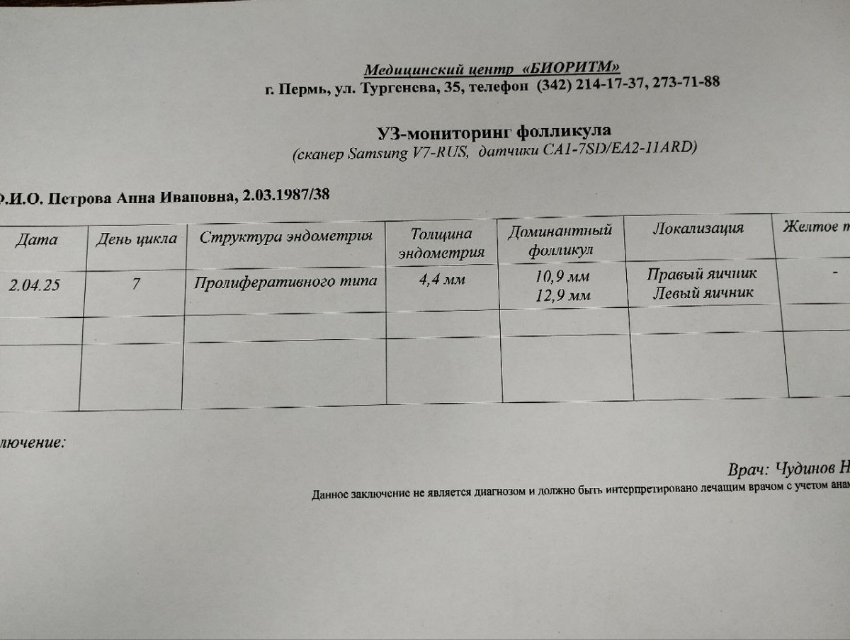 Друзья, всем огромный привет 🤗 Сегодня ходила на УЗИ измерять эндометрий и доминантный фолликул на 7-ой день цикла