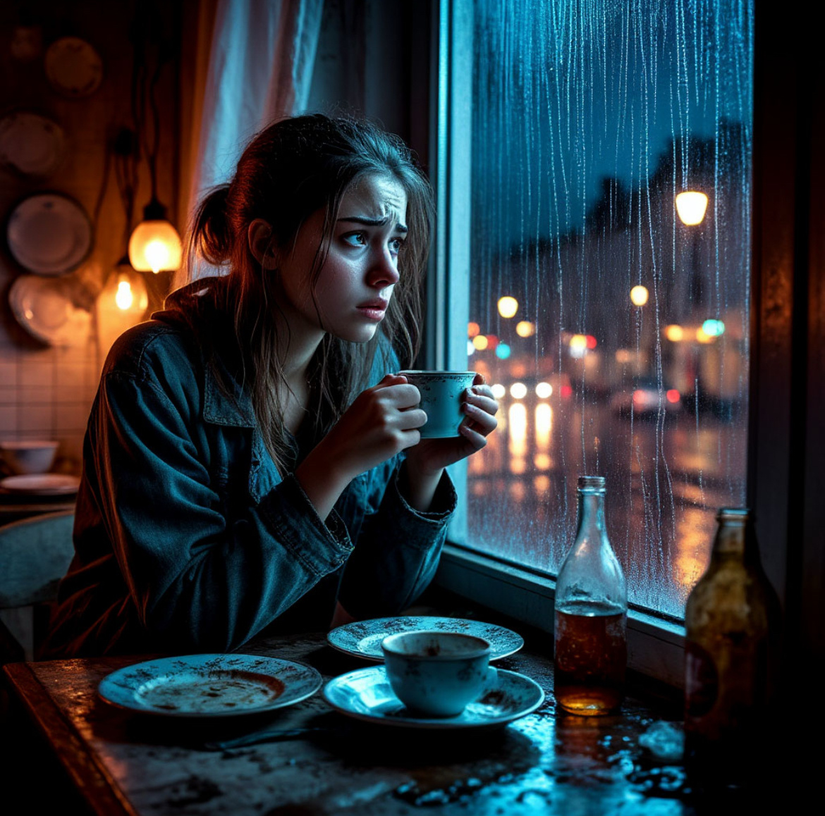 Вечер накрыл город, будто кто-то небрежно бросил на улицы рваное одеяло — серое, с пятнами сырости и едким запахом мокрого асфальта. Лариса стояла у окна, обхватив ладонями чашку с остывшим чаем, и смотрела, как фонари загораются один за другим, выхватывая из темноты лужи и голые ветки. Их свет дрожал, словно от холода, и ей казалось, что это чья-то невидимая рука щелкает выключателями, играя с ночью. В квартире было тихо — так тихо, что она слышала, как тикают часы в соседней комнате, и этот звук царапал нервы, предвещая что-то недоброе. Она не ошиблась: дверь хлопнула, будто выстрелила, и в прихожую ввалился Олег — щеки красные, глаза злые, ботинки в грязи.