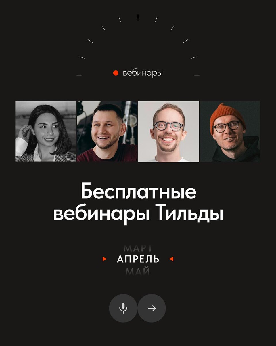 📅 Бесплатные вебинары Тильды в апреле В апреле узнаете, как развиваться в дизайне, каким должно быть портфолио, а также как грамотно презентовать проекты и идеи. Регистрируйтесь, чтобы получить ссылку на вебинар перед началом: ▶ 3 апреля в 13:00 Дизайн-ревью сайтов на Тильде в прямом эфире https://webinars.tilda.cc/rabota-nad-oshibkami ▶ 9 апреля в 13:00 Дизайнер и бизнес: как вырасти в студию и не потерять себя https://webinars.tilda.cc/design-business ▶ 17 апреля в 13:00 Как презентовать проект заказчику https://webinars.tilda.cc/project-presentation ▶ 24 апреля в 13:00 Портфолио дизайнера: как стать заметным https://webinars.tilda.cc/portfolio Записи всех вебинаров сохраняются в ВК Видео и на YouTube-канале Тильды. Подписывайтесь, чтобы не пропустить новые видео: 📱 в ВК Видео → https://vk.com/tildapublishing 📺 на YouTube → https://www.youtube.com/@TildaPublishing