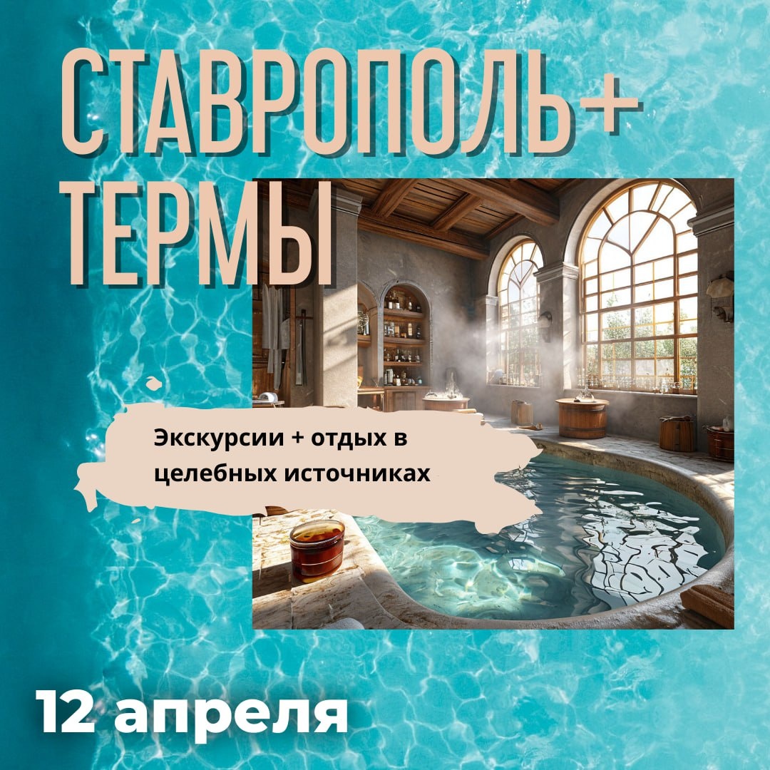 🌱Ставрополь — это удивительный город, расположенный на самом юге России, предлагает богатую историю и великолепные природные пейзажи. 🤩🤩🤩➖Отлично 🤩🤩🤩➖совместить 🤩🤩🤩➖экскурсии с 🤩🤩🤩➖отдыхом в лечебных источниках, ведь край изобилует термальными комплексами. 🌺☁️☁️☁️☁️☁️☁️☁️☁️☁️☁️🌺 🍃🍃🍃🍃🍃🍃🍃🍃 В программе тура: 🤩 Пешеходная обзорная экскурсия по исторической части Ставрополя; 🤩 Обед в кафе города; 🤩 Посещение краеведческого музея им. Прозрителева и Праве с уникальной экспозицией Южных слонов; 🤩 Посещение термального комплекса «Долина Гейзеров» в с. Казьминское. ➖➖➖🌺😭💋➖➖➖ Стоимость: 5300₽/чел. Даты: 12 апреля ➖➖➖➖➖➖➖➖➖ Дополнительные расходы: ✅ Питание; ✅ Личные расходы; ✅ Входные билеты: — Музей + экскурсия — 300₽ — Термальные источники 1 час — 500₽, 2 часа — 800₽. 🦋🪳☁️ПРОГРАММА 🐌🐌 ПОДРОБНЕЕ☁️ Пишите нам: 📚 WhatsApp: 8-951-528-23-91 📚 Телеграм: @TRIP_ADM_Bot _____________________ ***Данный тур вы можете заказать как корпоративный на любую удобную
