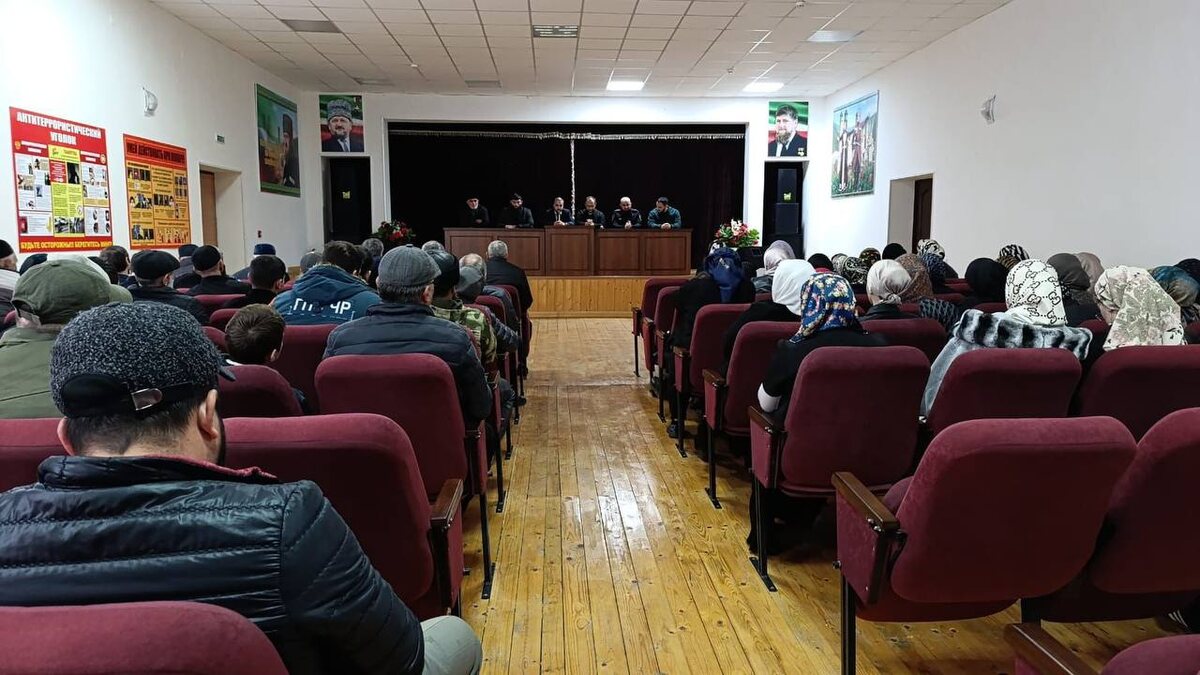 Министерство ЧР по национальной политике, внешним связям, печати и информации совместно с Прокуратурой ЧР, Департаментом по взаимодействию с религиозными и общественными объединениями Администрации Главы и Правительства ЧР и Общественной палатой ЧР в актовом зале районного дома культуры Шаройского района провело встречу с населением на тему: «Защита общероссийских духовно-нравственных ценностей в эпоху информационных вызовов современности». Спикерами на мероприятии выступили ведущий специалист-эксперт Департамента по взаимодействию с религиозными и общественными объединениями Администрации Главы и Правительства Чеченской Республики Сардалов Джамулат, заместитель Председателя Общественной палаты Чеченской Республики Хамадов Бекхан, начальник отдела национальной политики Мусаев Дишни.