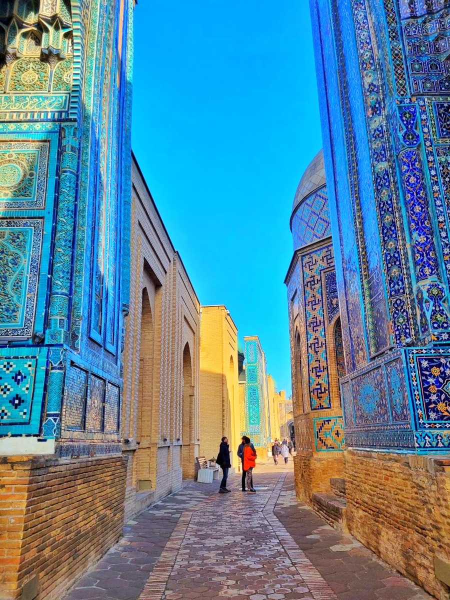 Перед поездкой в Узбекистан я думала, что самые сильные впечатления на меня произведет знаменитая площадь Регистан. Но впоследствии оказалось, что более всего мне понравилось и запомнилось совсем иное место - ансамбль мавзолеев Шахи-Зинда в Самарканде, напоминающий восточный город из сказок Шахерезады. Слышала, что некоторые местные называют его "кладбищенская улица", хотя никакого сходства с кладбищем здесь нет. Рассказываю, чем этот комплекс может удивить и восхитить даже бывалого путешественника. Это ансамбль старинных мавзолеев знатных особ, который формировался почти 10 веков. В Шахи-Зинда находится 11 мавзолеев разных эпох, от XI до XIX столетий. Здесь похоронены родственники Тамерлана, некогда прославленные военачальники, знаменитые религиозные деятели, ученые и пр. Со временем комплекс усыпальниц все разрастался и разрастался, пока не стал похож на старинную улицу. А ведет к Шахи-Зинда лестница из 36 ступенек. Прогуляемся по ней, чтобы увидеть, что внутри? Этот удивительный п