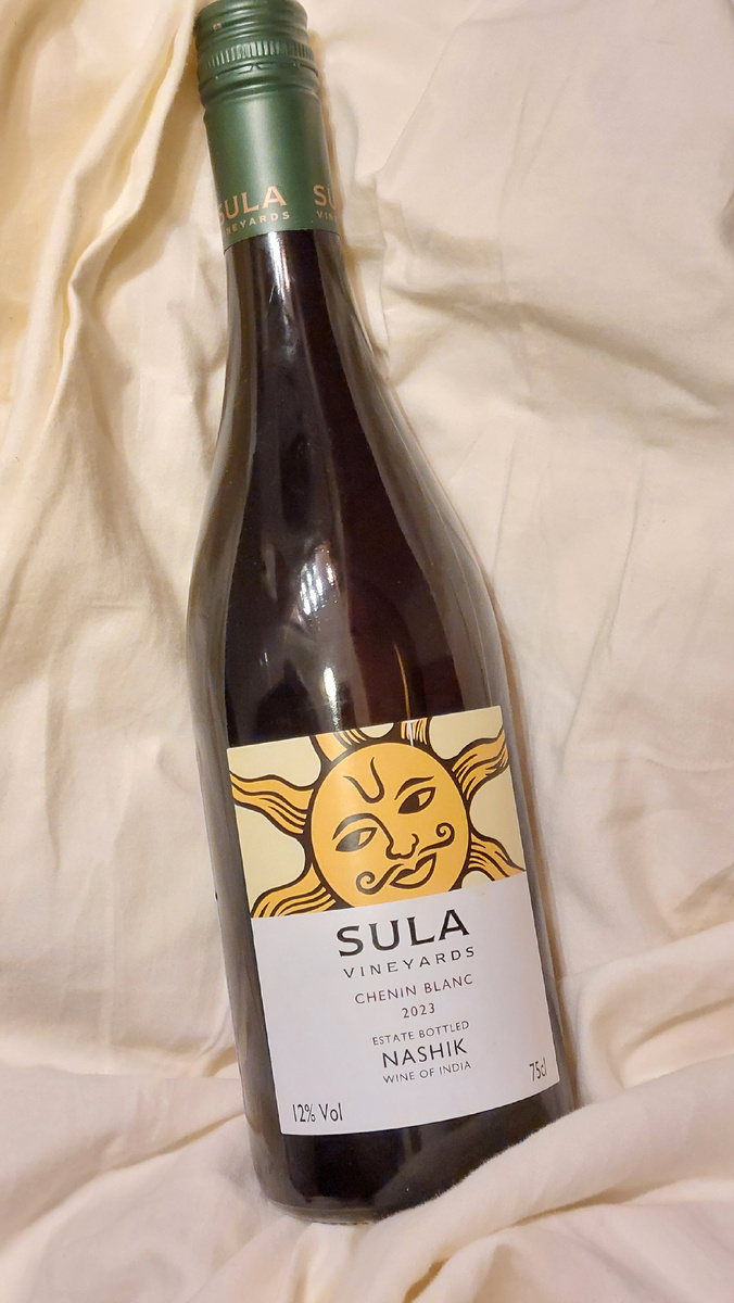 Находясь в поисках интересных предложений и делясь с Вами новостями с полок Перекрестка я некоторое время назад обсуждал в комментариях вина из Индии. Тогда мы пришли к выводу вроде "от греха - подальше". Между тем червь сомнения грыз меня и вот я не удержался. Да-да. Я купил его. Но не Шираз. У того на Vivino, если не ошибаюсь, было что-то около 2,5 баллов. Короче, нечто опасное. Сегодня же поделюсь впечатлениями про полусухое белое Sula Chenin Blanc Nashik 2023.