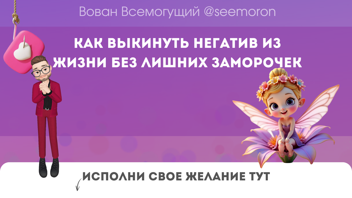 Ох, феюшка моя светлая, скажи честно — бывало у тебя такое? День вроде обычный, а вокруг как будто хмурая туча ходит. То чайник сломается, то с подружкой поссоришься, то деньги как сквозь пальцы — то на косметику ушли, то на срочные тапочки для кота. Вот и ко мне недавно зашла знакомая — Анька, моя закадычная волшебница. Села на табуретку и говорит: — Вован, ну что за ерунда? Всё валится из рук, люди вокруг как будто с завода по производству токсинов сбежали. Что делать? Я ей, конечно, как честный симоронист, сразу ответил: — Феюшка, да расслабься ты. Сейчас покажу, как с этим покончить без тяжёлой артиллерии и плясок с бубном. Давай разберёмся по-простому. Иногда наш энергетический бак просто переполняется негативом. Кто-то обидел, где-то сама себе мозг съела мыслями «я не такая, я не справлюсь», да и погода иногда шепчет: «сиди и грусти». Но! Главное — ты не виновата. Просто где-то запылились крылышки. И ничего страшного — протрем их щас, как в лучших традициях. Что делать? Ритуал