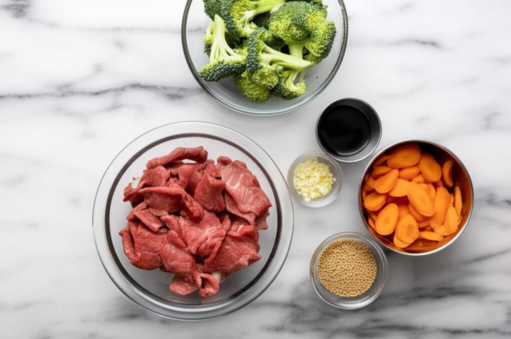 - 450 г говяжьей вырезки, нарезанной полосками по 5 см