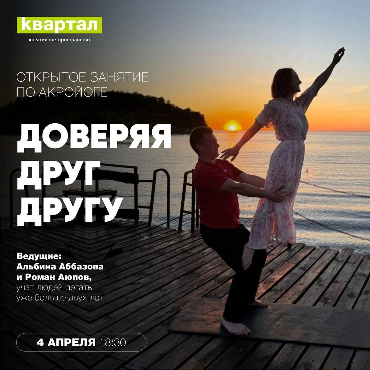 Возможность мягко и бережно познакомиться с акройогой, освоить парные балансы и базовые акробатические элементы. Занятие построено таким образом, чтобы каждый смог поймать ощущение полёта и удивиться возможностям своего тела. Приходите, даже если у вас нет спортивного прошлого, мостика и шпагата.