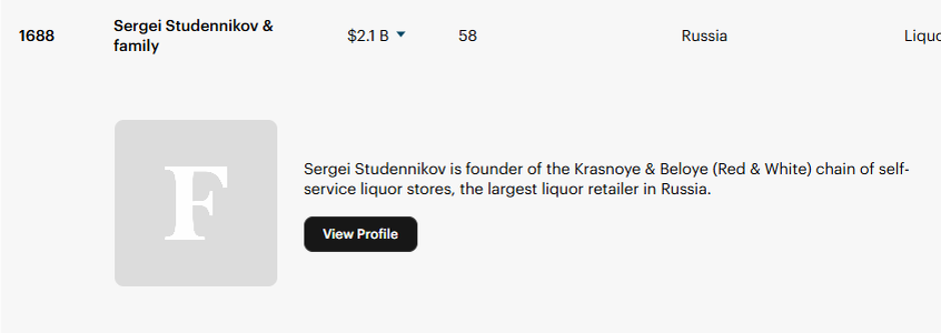 Благодаря успешному развитию бизнеса Студенников уже несколько лет входит в число самых богатых людей России по версии Forbes. В 2024 году он занял 44 строчку из 125 с состоянием в 3,2 миллиарда долларов.