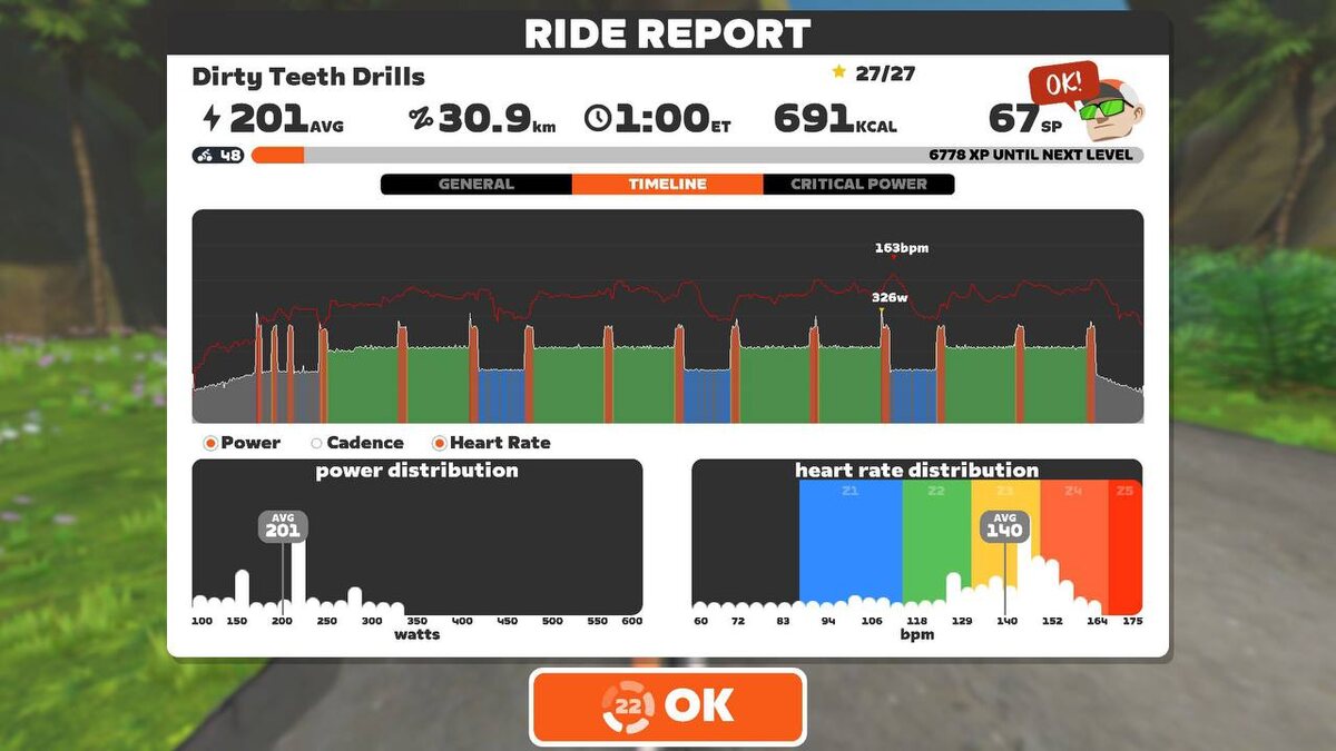 Нашел в Zwift очень приятную тренировку на час. Как раз хотел сделать длинные четыре отрезка не упарываясь.