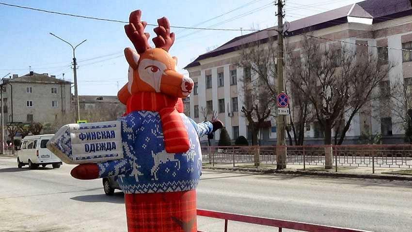 Камышинские менеджеры пытаются проявлять креативный подход к продвижению весенних ярмарок. "Тематические" персонажи в рогами на улице Ленина рекламируют распродажу одежды.