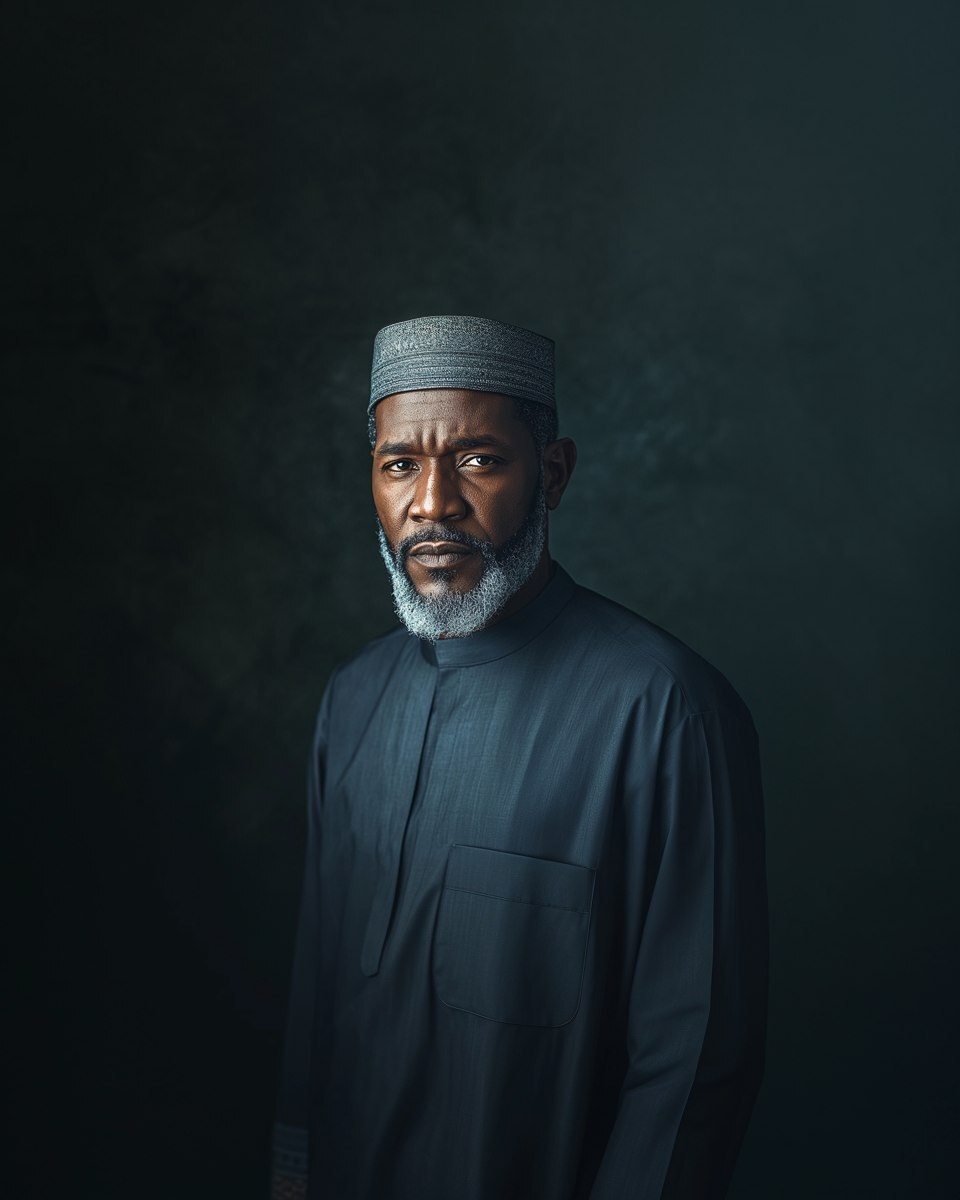 Создано на основе запроса: A photorealistic portrait of a distinguished Hausa businessman, around 50 years old, with a well-groomed salt-and-pepper beard, wearing a plain-colored Babban Riga with a matching cap, standing confidently against a dark moody background, professional and elegant, dramatic lighting, high detail, ultra-realistic --- Автоперевод: Фотореалистический портрет выдающегося бизнесмена Хауса, около 50 лет, с ухоженной бородой соли и перца, одетый в простой рожок Риги с подходящей кепкой, с уверенностью на темном капризном фоне, профессиональном и элегантном, драматичном освещении, высоких деталях, ультра-реальных Интересно выглядит? 🤔 https://dzen.ru/id/65c0c65c86e4f837c27b24d7 #ИИ #AI #нейросеть #midjourney #art