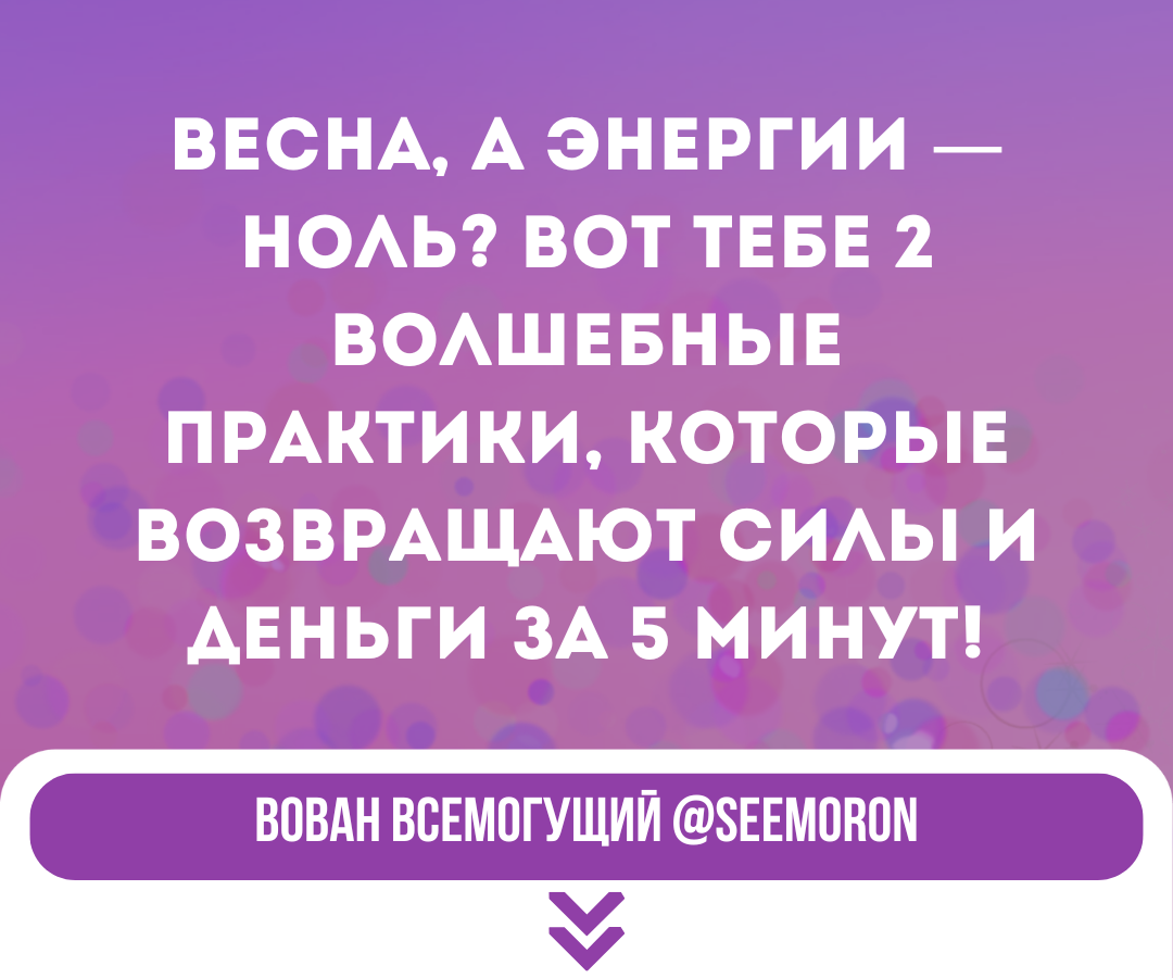 Но я-то знаю, как вернуть и энергию, и радость, и даже подтянуть денежки. Готова? Тогда поехали!
