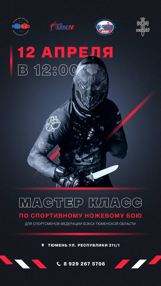 ⚔️Мастер-класс по ножевому бою! ⚔️ 📅 Дата: 12.04.2025 ⏰ Время: 12-00 📍 Место: Республики 211/1 Федерация бокса Тюменской области, Клуб Ветеранов бокса Тюменской области совместно со Школой Толпар приглашает на мастер-класс по ножевому бою! Что вас ждет: ✔ Основы работы с ножом (стойки, удары, защита) ✔ Отработка техник в парах и спарринги ✔ Развитие скорости, реакции и тактического мышления ✔ Практические навыки самообороны 💡 Для кого: спортсмены, тренеры и все, кто хочет расширить свои боевые навыки. 🎯 Уровень: любой (новички и опытные). 📌 Инвентарь: тренировочные ножи, экипировка (предоставим). 🔗 Запись: +79292675706 @antonio_buz @Alex_CVTB_72 Не упустите шанс освоить новые техники и прокачать свои навыки!🚀 #БоксТюмень #НожевойБой #Самооборона #МастерКласс