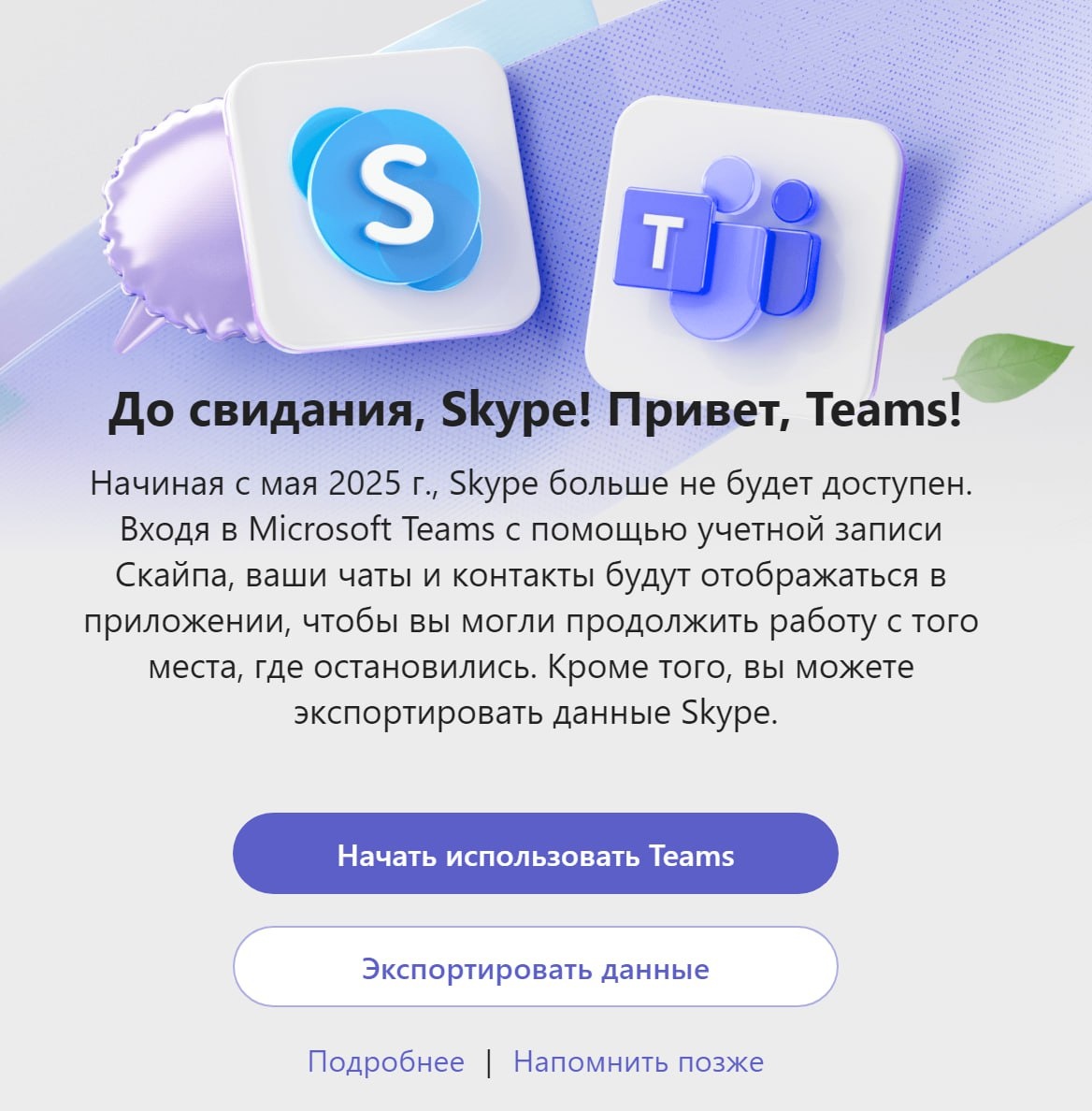 ❗️ Переход из Skype в Teams. Майкрософт сделал это - лёгкий переход в Teams с сохранением контактов и чатов! 😊👍 С сегодняшнего дня вы можете перенести свои контакты и чаты из Skype в Teams. До 1 мая можно пользоваться одновременно обоими приложениями. Рекомендую не откладывать, а уже сейчас перейти на Teams. Весь процесс установки Teams показан на картинках к посту, всё очень легко: - При открытии Скайп примите предложение Начать использовать Teams. Или нажмите аналогичную кнопку в верхней полоске окна Скайп. - Далее начнётся скачивание Teams, подождите. - Когда появится окно Оставайтесь на связи в Microsoft Teams и Скайпе, нажмите Разрешить - Ещё несколько окон где нужно согласиться. Teams очень похож на Скайп, вы легко сможете писать в чатах и делать звонки, демонстрацию экрана. Новое в Teams это Календарь, в котором можно планировать видео встречи. Бесплатный план позволит создавать встречи до 60 минут и до 100 человек. Из приятного, новое форматирование текста - есть целая