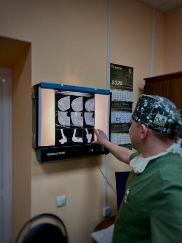 «Мы провели первичную хирургическую обработку ран правого локтевого сустава и установили аппарат внешней фиксации плеча и предплечья. Операция длилась 50 минут, что позволило минимизировать кровопотерю», — рассказал Алексей Толкачев, лечащий врач-травматолог-ортопед.