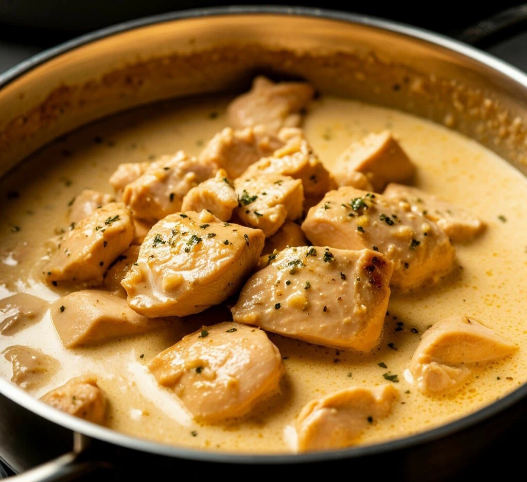 Куриная грудка в сливочном соусе — простое блюдо, которое всегда получается вкусно. Нежное мясо плюс ароматный кремовый соус — что может быть лучше для сытного ужина? Давайте готовить! - Лук очистить и нарезать тонкой соломкой. - Куриную грудку промыть, обсушить бумажным полотенцем и нарезать кубиками размером 2-3 см. - Разогреть сковороду на сильном огне, добавить растительное масло. - Выложить курицу одним слоем и обжаривать по 1 минуте с каждой стороны до легкой румяной корочки. - Добавить нарезанный лук, уменьшить огонь до среднего и обжаривать вместе с курицей 3-4 минуты, пока лук не станет мягким. - Влить сливки, добавить куриную приправу, чеснок, нарезанный мелко, соль по вкусу (учитывая, что приправа уже содержит соль). - Довести до кипения, затем убавить огонь и тушить 4-5 минут, пока соус не загустеет. - Выключить огонь, перемешать. Подавать с картофельным пюре, или рисом. По желанию можно посыпать свежей рубленой зеленью (петрушкой или укропом). Приятного аппетита! Не забуд