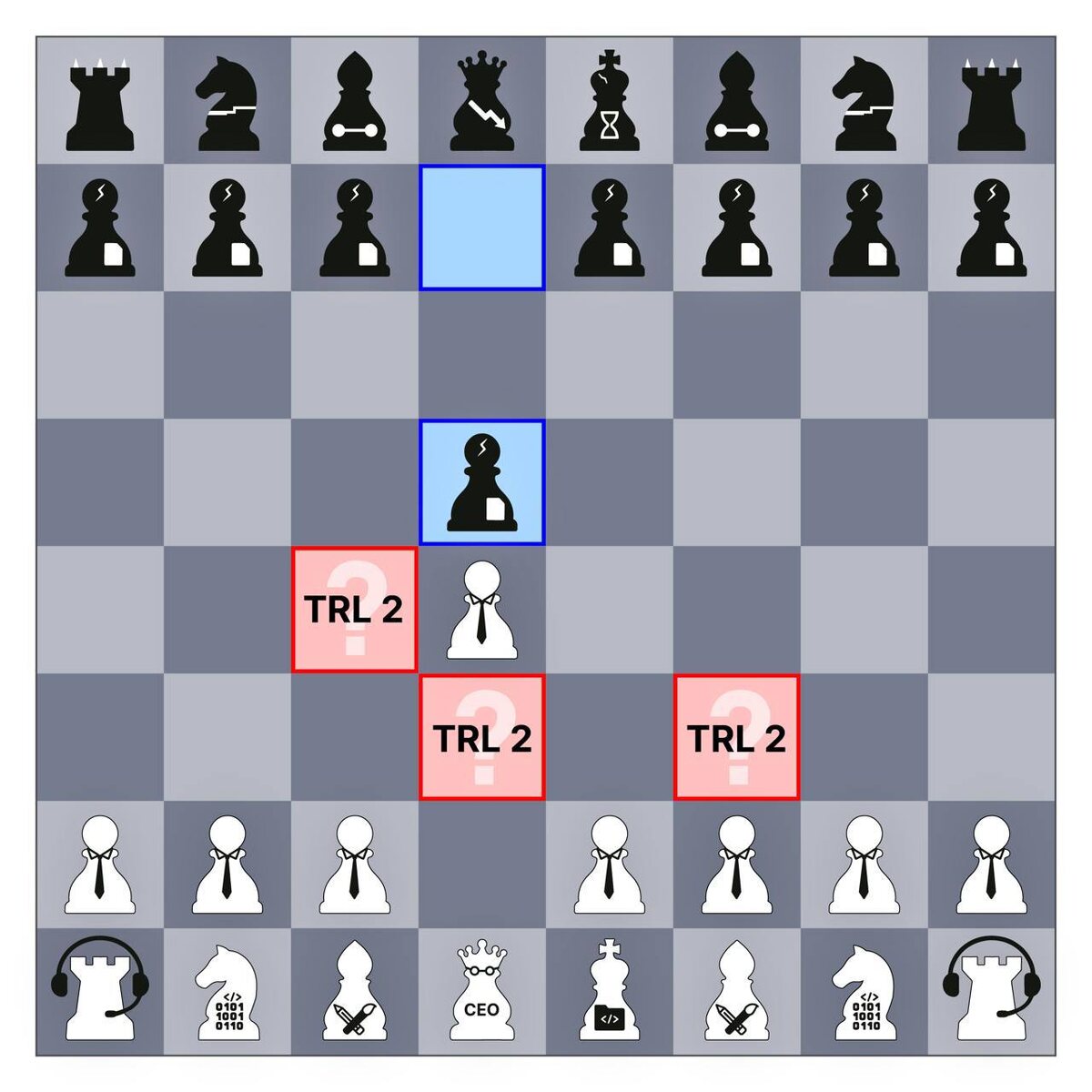 ♟️ ПАТЕНТНЫЕ ШАХМАТЫ: первый ход! В шахматах есть классический дебют — ферзевый гамбит. Белые жертвуют пешку, чтобы захватить центр и получить долгосрочное преимущество. Точно так же стартап может "пожертвовать" время и ресурсы на ранних этапах, чтобы занять сильную позицию на рынке. 🤔 Почему патентная аналитика — это ваш стратегический ход? Развитие стартапа можно сравнить с прохождением уровней технологической готовности (TRL 1–9). Каждый шаг вперёд — это новый ход в партии, где: - Ваши действия (белые) — переход на следующий TRL. - Ответ среды (чёрные) — вызовы: конкуренты, рынок, юридические риски. Ключевая идея: как в ферзевом гамбите временная "жертва" (вложения в R&D и патентный анализ) превращается в стратегическое преимущество. Начнем игру! 🧩 Первый ход: 1.d4 (TRL 1 → TRL 2) - Шахматы: Белые занимают центр, открывая путь фигурам. - Стартап: У вас есть гипотеза (TRL 1), и вы формулируете концепцию продукта (TRL 2). - Что важно? Патентный поиск. Это как защита пешки ферзё
