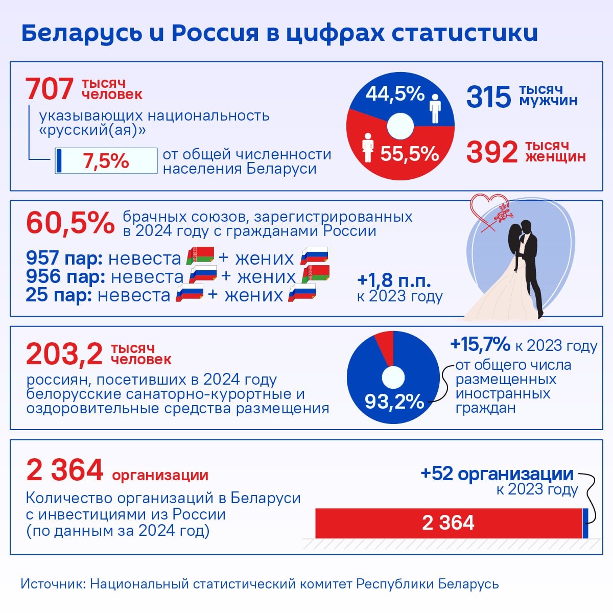 Союз Беларуси и России в цифрах статистики Согласно данным статистики, годовой прирост в цифрах фиксируется не только в экономических отношениях двух стран. Подробности – в нашей инфографике. @SPUTNIKBY