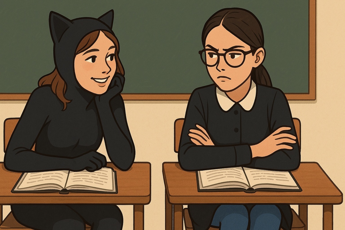 Посещение свободное: с тем условием, разумеется, что если уж зашёл в класс, то будь добр 45 минут высидеть с полным вниманием, как собака, ждущая возвращения хозяина из мясной лавки. Но если лень посещать уроки, то можно заниматься самому — взять учебник или планшет с нейросетью, устроиться в одном из мест для занятий, зарыться в выбранный предмет. При появлении вопросов — подойти к живому учителю за разъяснением и советом.
