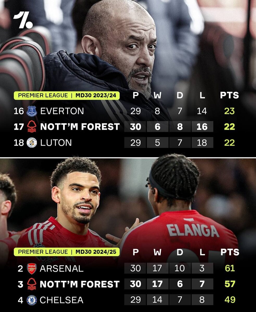 «Ноттингем Форест» все ближе к тому, чтоб заполучить место в Лиге Чемпионов. И даже выиграть, как минимум, бронзовые медали. Хотя в прошлом году, сыграв те же 30 игр, они шли в зоне вылета. В последний раз команда попадала в тройку в сезоне 1994/95, когда их тренировал легендарный Брайан Клаф, с которым клуб выигрывал Кубок Чемпионов: дважды в 1979 и 1980 годах.