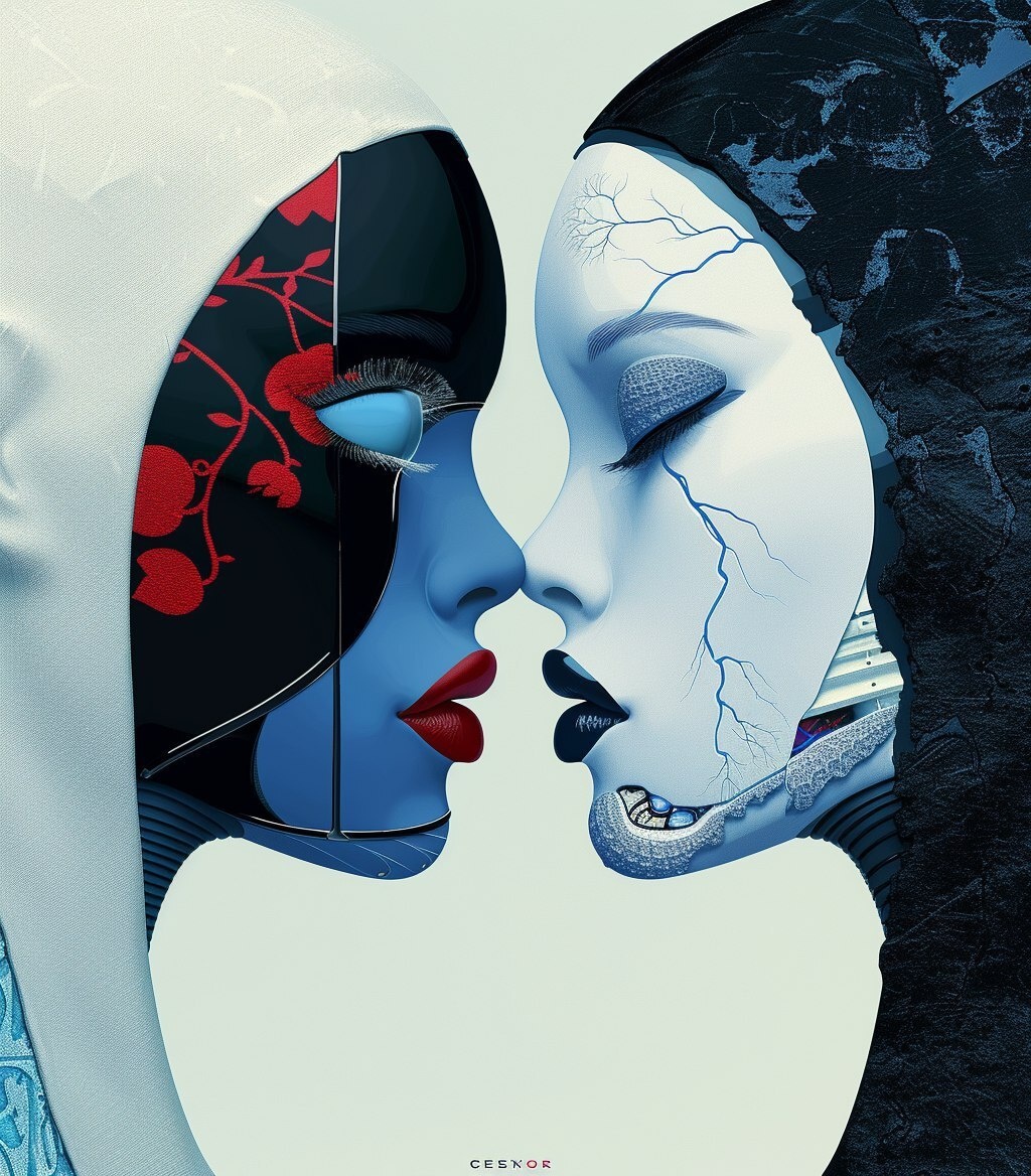 Создано на основе запроса: And no one, no one should know what happens between a husband and wife, if they love each other. And no matter what kind of quarrel they have, they should not call their own mother as a judge and tell each other about each other. They are their own judges. Love is a mystery of God and should be hidden from all strangers' eyes, no matter what happens. Lots of details.Surrealism Dali and Escher effects stylization