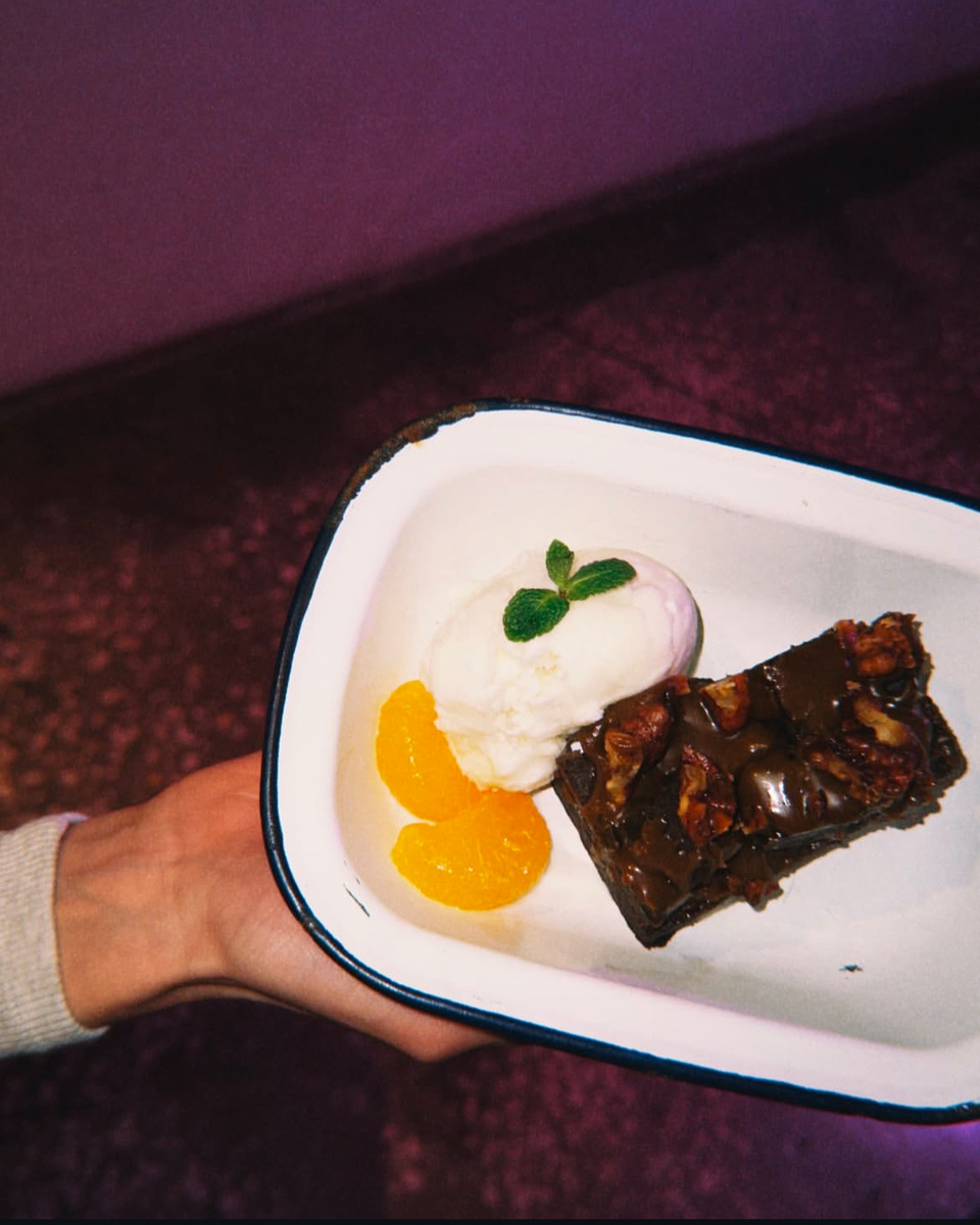 История десерта: брауни с мороженым и маринованным мандарином Брауни появились в конце XIX века в США, когда один повар случайно забыл добавить разрыхлитель в шоколадный пирог. Получился плотный, влажный десерт с насыщенным вкусом — так родился классический брауни. Со временем его стали подавать с мороженым (чаще всего ванильным), создавая контраст горячего и холодного. А маринованные цитрусовые — это современный гастрономический тренд: их кисло-сладкий вкус и нежная текстура идеально дополняют богатый шоколад и сливочное мороженое. Этот десерт сочетает традиции и новаторство: плотный шоколадный брауни, тающее мороженое и яркие ноты маринованного мандарина. Рецепт: брауни с мороженым и маринованным мандарином Ингредиенты Для брауни: - 200 г темного шоколада (от 70%) - 150 г сливочного масла - 200 г сахара - 3 яйца - 100 г муки - 30 г какао-порошка - Щепотка соли - 1 ч. л. ванильного экстракта Для маринованных мандаринов: - 2–3 мандарина (очищенных, разделенных на дольки) - 100 мл воды