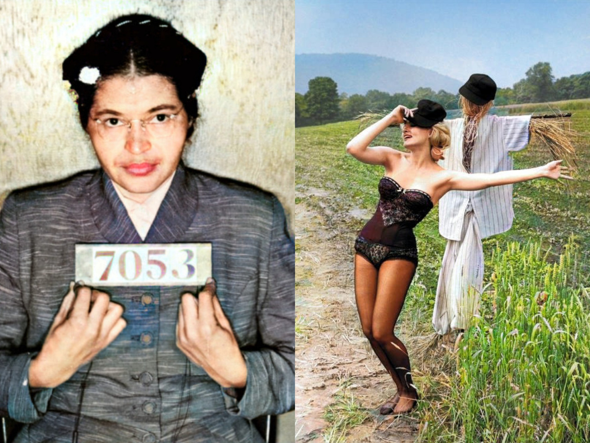 Фотография сделана после ареста за участие в бойкоте сегрегированных автобусов в Монтгомери, штат Алабама. 1956 год. Роза была одной из первых темнокожих активисток за гражданские права. В 1956 году в Монтгомери, Паркс отказалась уступить своё место в автобусе белому мужчине. Этот, казалось бы, незначительный акт неповиновения, стал катализатором бойкота автобусов в Монтгомери, а затем и всего движения за гражданские права в США. В 1950-х годах Паркс столкнулась с уголовными обвинениями и насмешками общественности, но позже стала национальным символом силы и достоинства в долгой борьбе за искоренение расовых предрассудков.