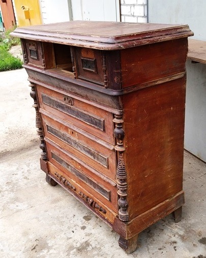 Всем привет! Попался мне на одном объекте комод. Хотя он и не комплект, нет среднего ящика и некоторых ручек, но стало жалко и я его забрал. И буквально через пару дней дом снесли. Отмыл его от вековой пыли и грязи и стал он у меня еще симпатичней. На самом комоде никаких обозначений или чего либо для его, хотя бы примерной, датировке по возрасту я не нашел. А вот на фурнитуре есть. К примеру, на ручке указан ее изготовитель. Артель имени Чкалова, Вареж. Так же есть и замке. Балахна МБДП МехЗавод. Единственное, что мне не понятно почему так поставлены руки и замок? Такое ощущение, что изначально они там не планировались и были добавлены позже. А должны были там стоять ручки «Грибы» или « Кнопки» в этих местах. Выходит данная мебель 30х годов. Хотя я могу и ошибаться. А вы что думаете, насчет периода данного комода? Вам большое спасибо за просмотр и комментарии! С уважением, Сергей.
