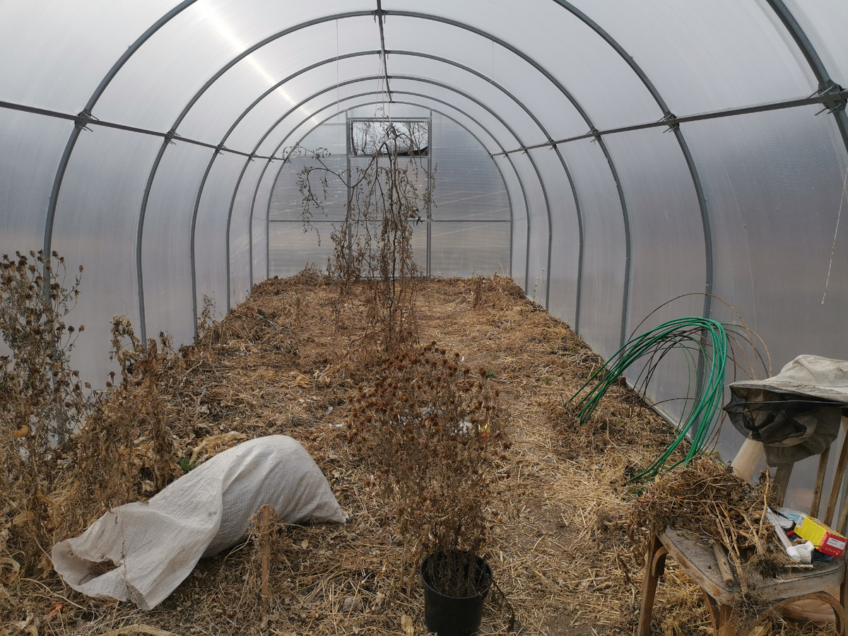 Я когда начинаю убираться, то у меня бардака получается больше, чем было ДО уборки. Могу. Умею. Практикую. Хотите и вас научу? Изначально статья планировалась о тепличных посадках 1 апреля, но пока я листала фотки для неё, поняла, что про теплицу надо писать отдельно и рассказать почему вообще в ней все так. А то меня уже под роликом спросили почему столько СЕНА. Корову, блин, заведу. Изначально начнем вот с чего. Куст по центру видите? Это эксперимент был: до какого месяца томаты выживут. Как итог - последний сняла 31 октября. Куст не выдернула, была в чистой одежде, плюнула, а потом грязь развезло, а там и снег. Ну и простоял он так всю зиму. Слева куст - это бархатцы. Их я оставила на семена. Это план такой был и он сработал. Осталось только дождаться когда они взойдут, потому что буквально вчера я 200 штук воткнула. А так еще вот набрала баночку. Соломы я сгребла много, но не всю, осталась приличная часть там прямо, перекапывать буду точечно, а не всю теплицу под лопату, поэ