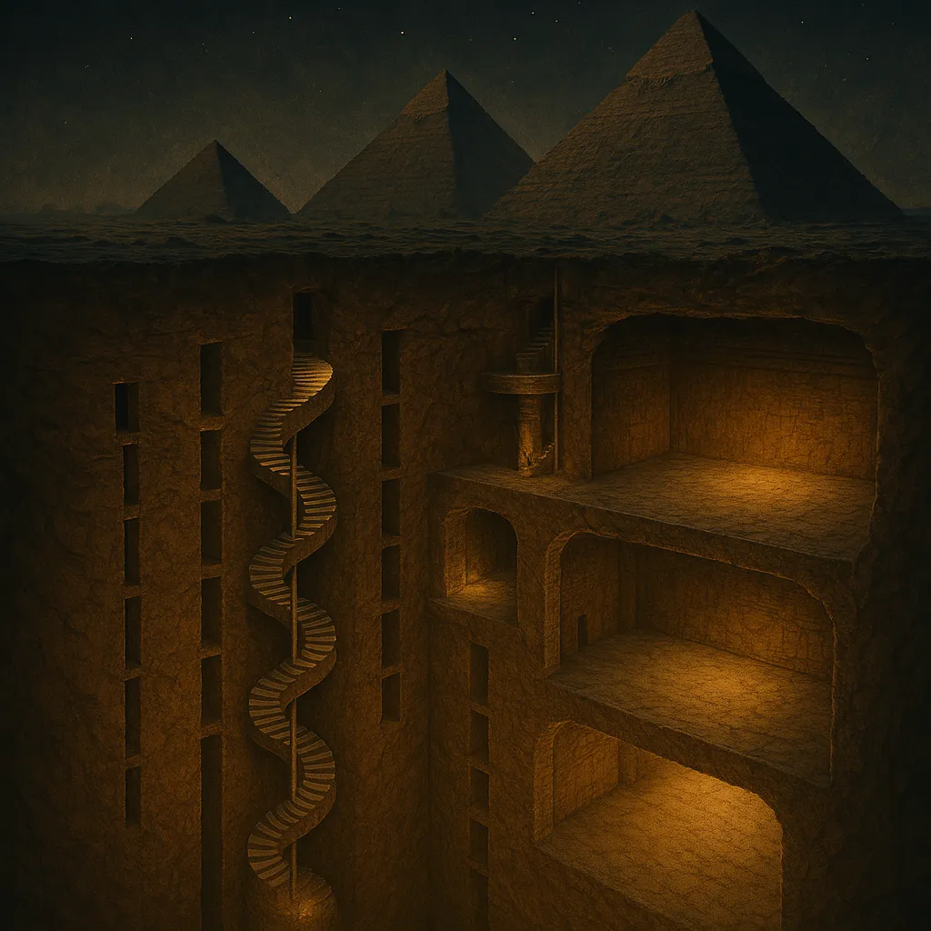 В 2 часа ночи в душной каирской ночи исследовательская группа профессора Коррадо Маланги ютится за скудной изгородью из кактусов. Их георадар только что зафиксировал невозможное: сеть шахт и спиральных лестниц под строениями плато Гиза, уходящую глубже, чем сами пирамиды.